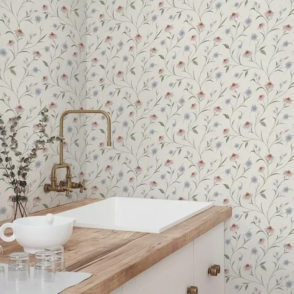 Tapet Margarete de câmp și echinaceea pe fond crem, luminozitate Nr. a00614