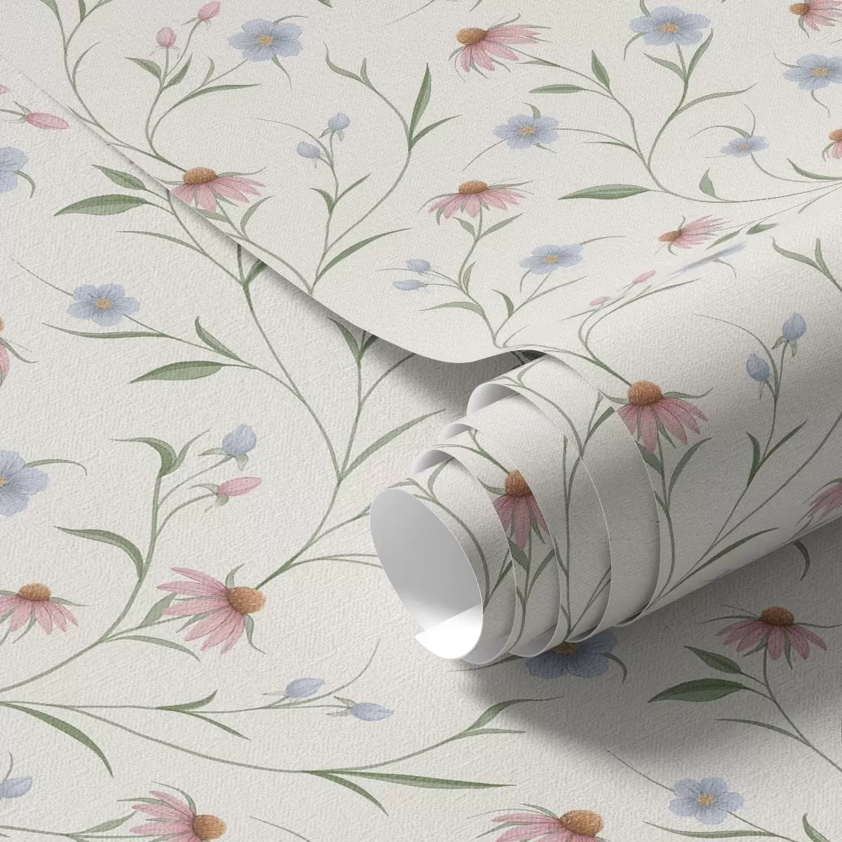 Tapet Margarete de câmp și echinaceea pe fond crem, luminozitate Nr. a00614