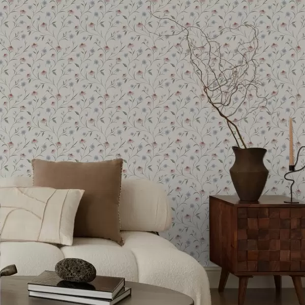 Tapet Margarete de câmp și echinaceea pe fond crem, luminozitate Nr. a00614