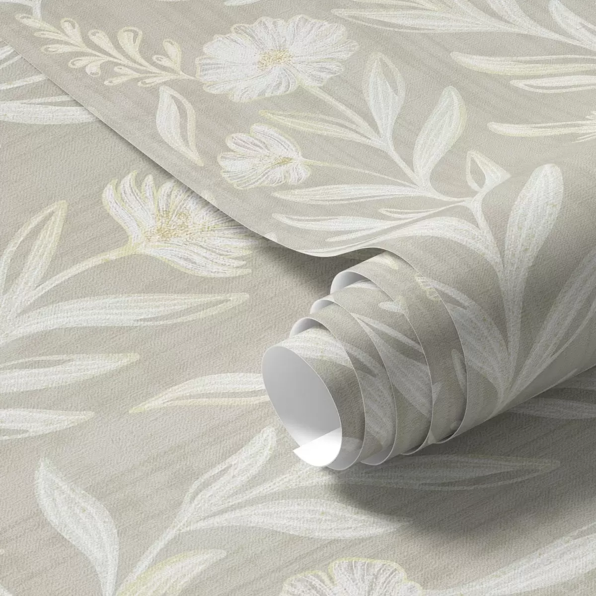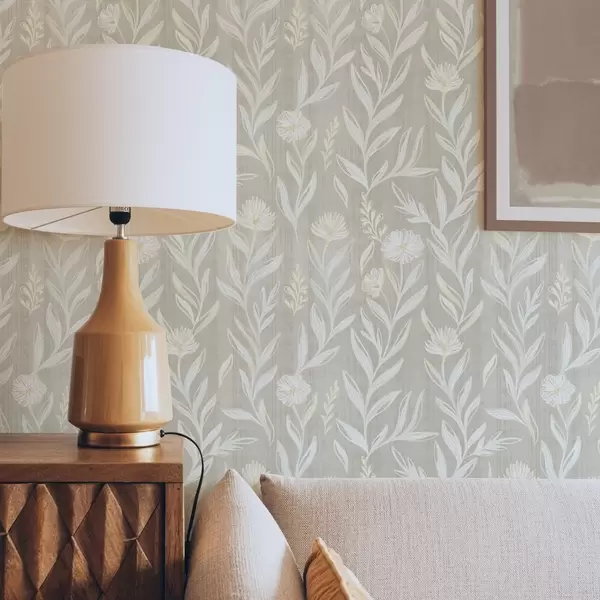 Tapet Ierburi și flori ușoare pe fundal bej, linii schițate Nr. a00618