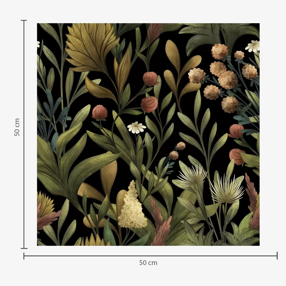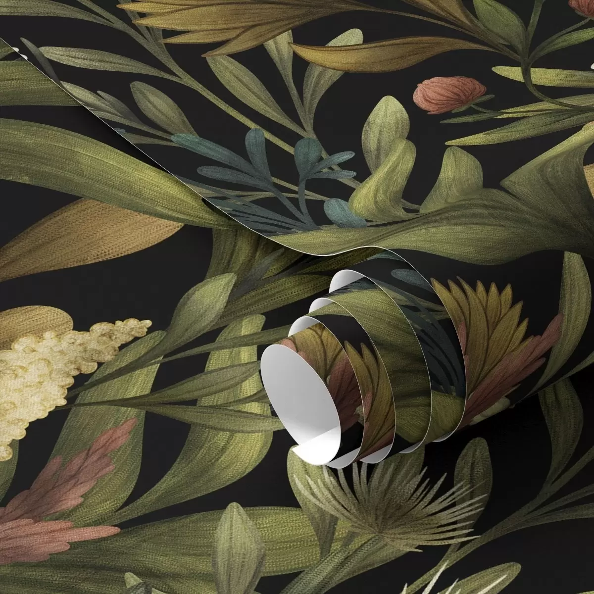 Tapet Grădină botanică pe fundal negru, paletă caldă de toamnă Nr. a00619