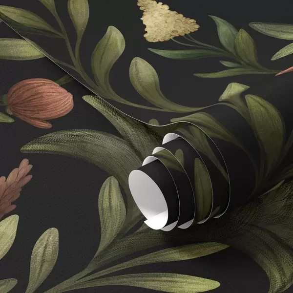 Tapet Ierburi înalte și flori pe fond negru, imprimeu detaliat Nr. a00620