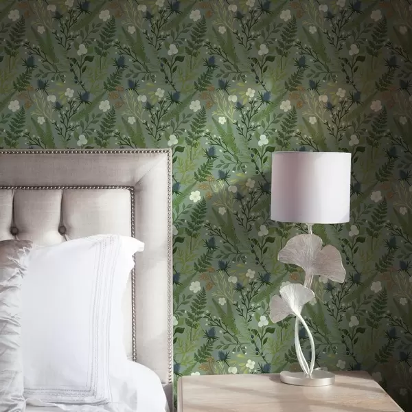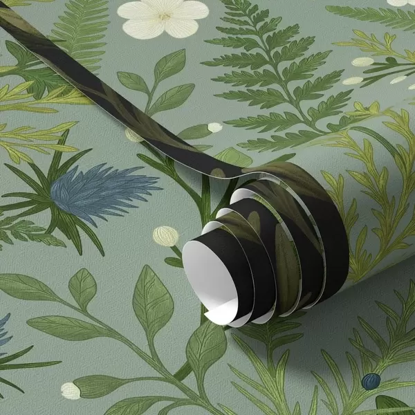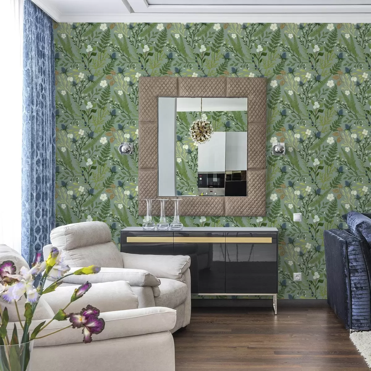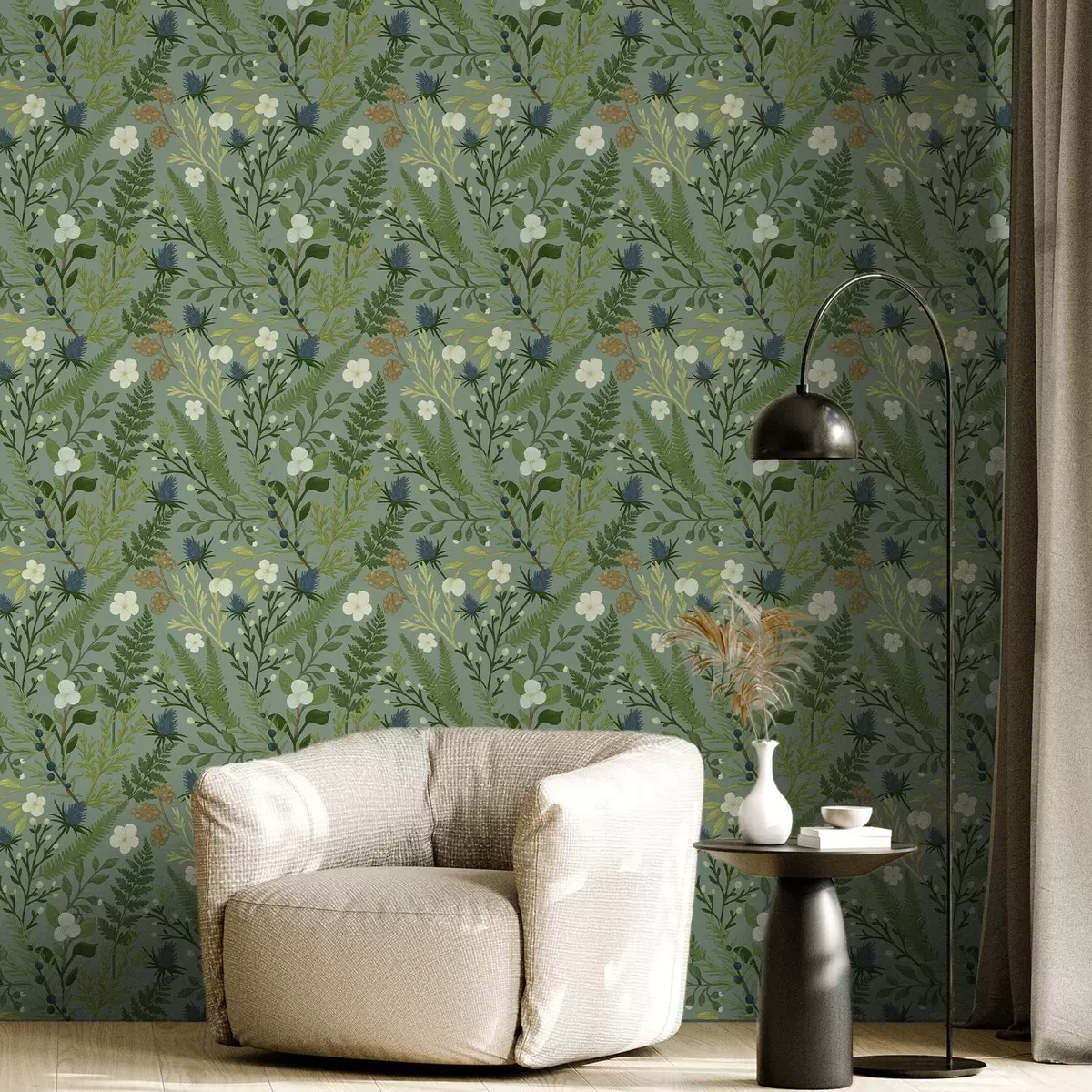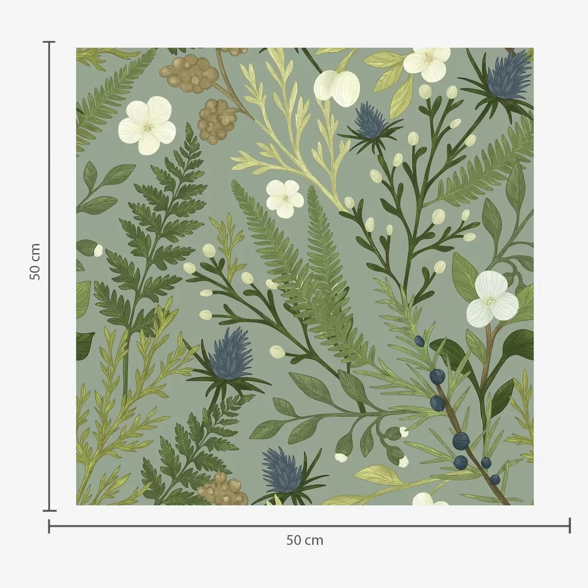 Tapet Ierburi de pădure, cicoare și fructe de pădure pe un fundal de mentă Nr. a00621v1