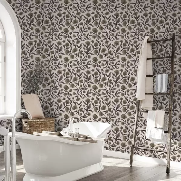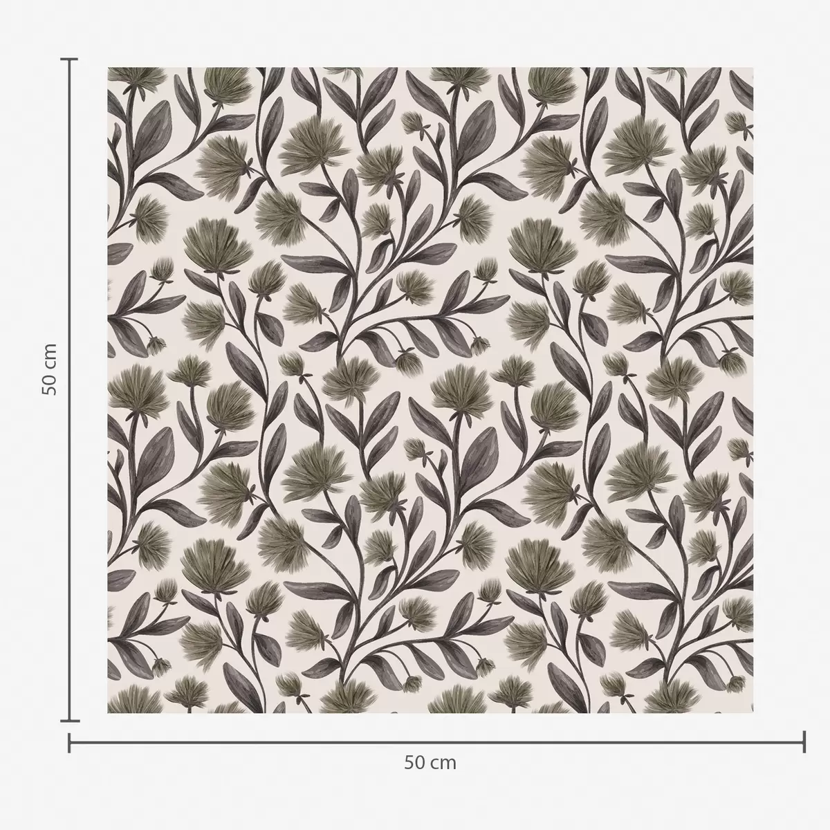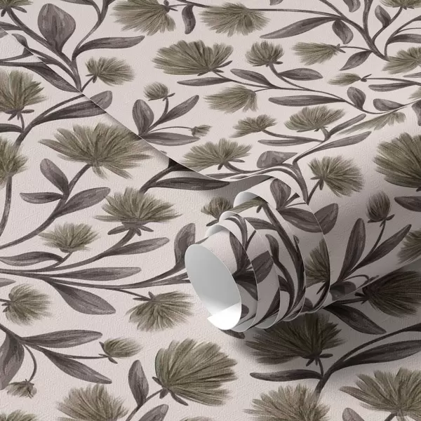 Tapet Flori sălbatice în nuanțe de gri-măsliniu pe fond crem Nr. a00623v1