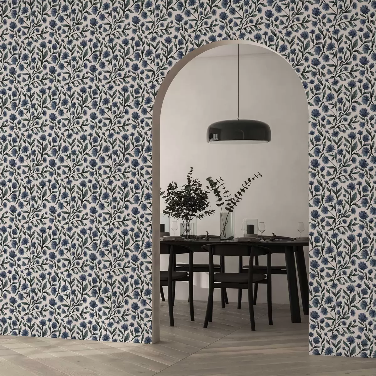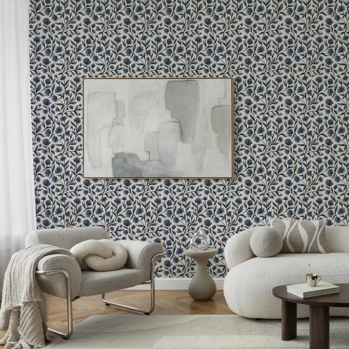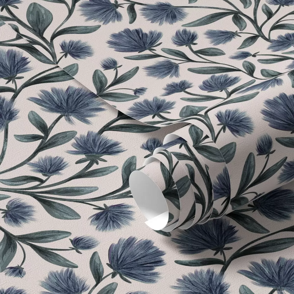 Tapet Flori sălbatice într-o paletă de culori albastru-verde pe un fundal crem Nr. a00623v2
