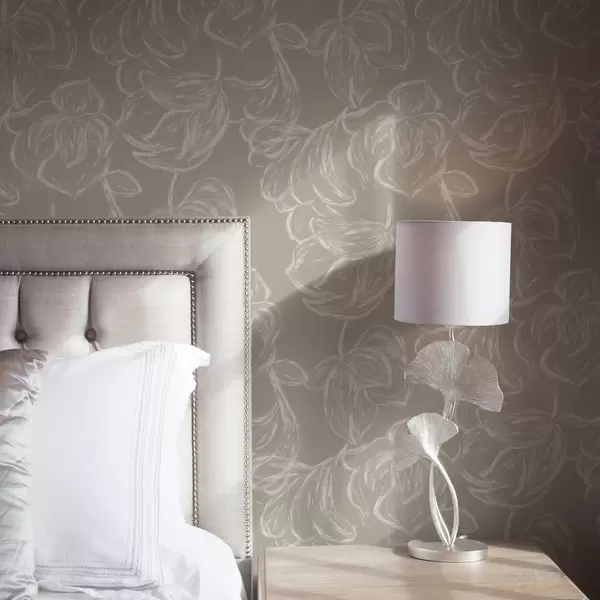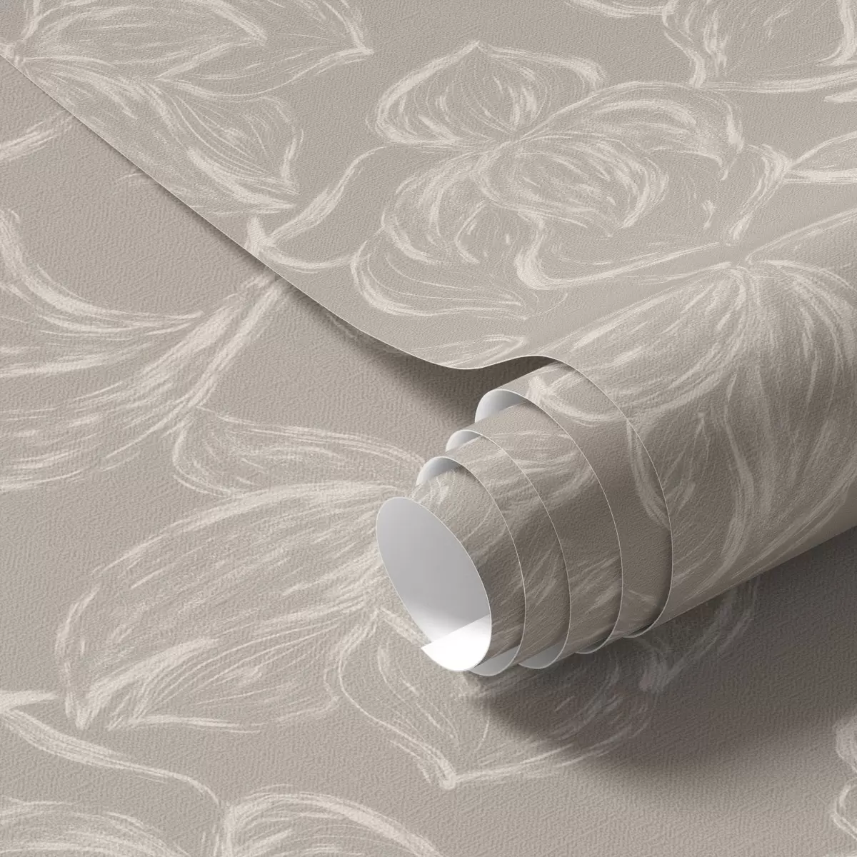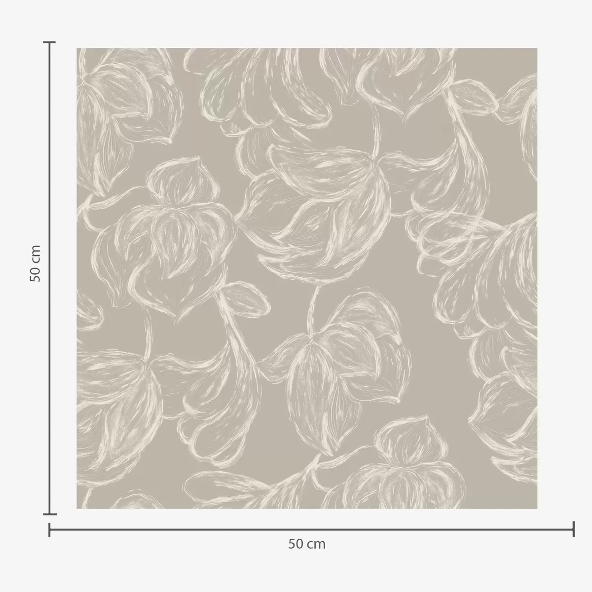 Tapet Flori conturate cu crem pe un fundal cald de culoare gri-bej Nr. a00625v2