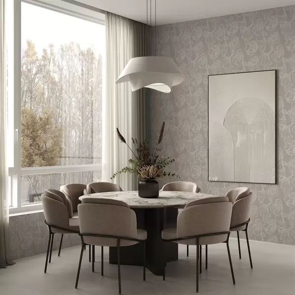 Tapet Flori conturate cu crem pe un fundal cald de culoare gri-bej Nr. a00625v2