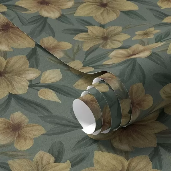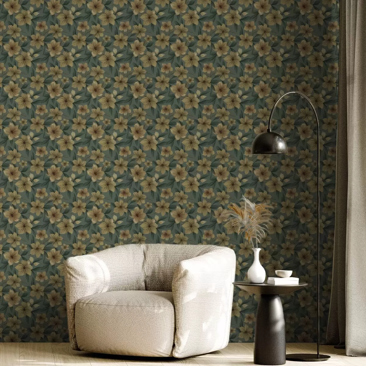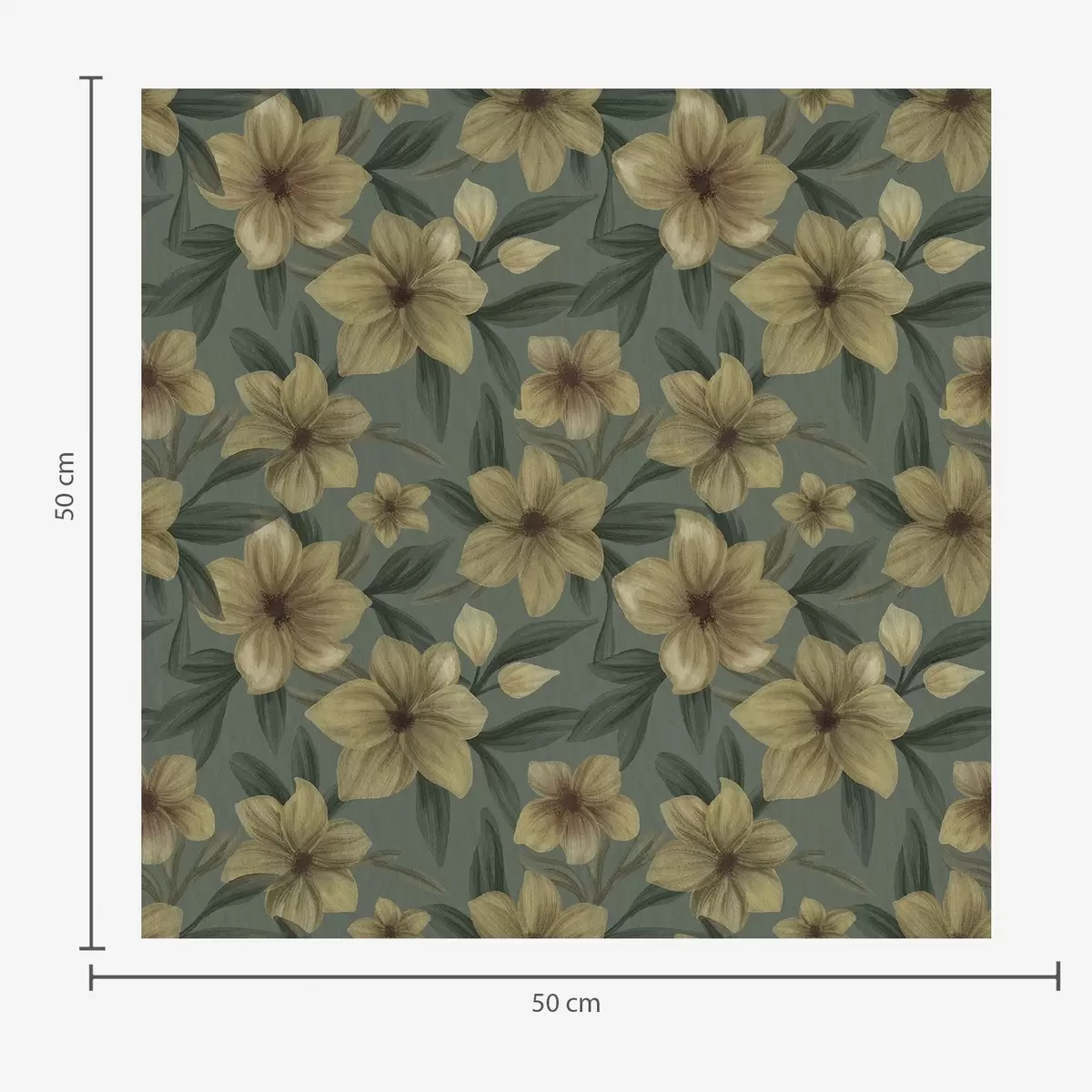Tapet Flori ocru pe un fundal verde intens, model dens Nr. a00628