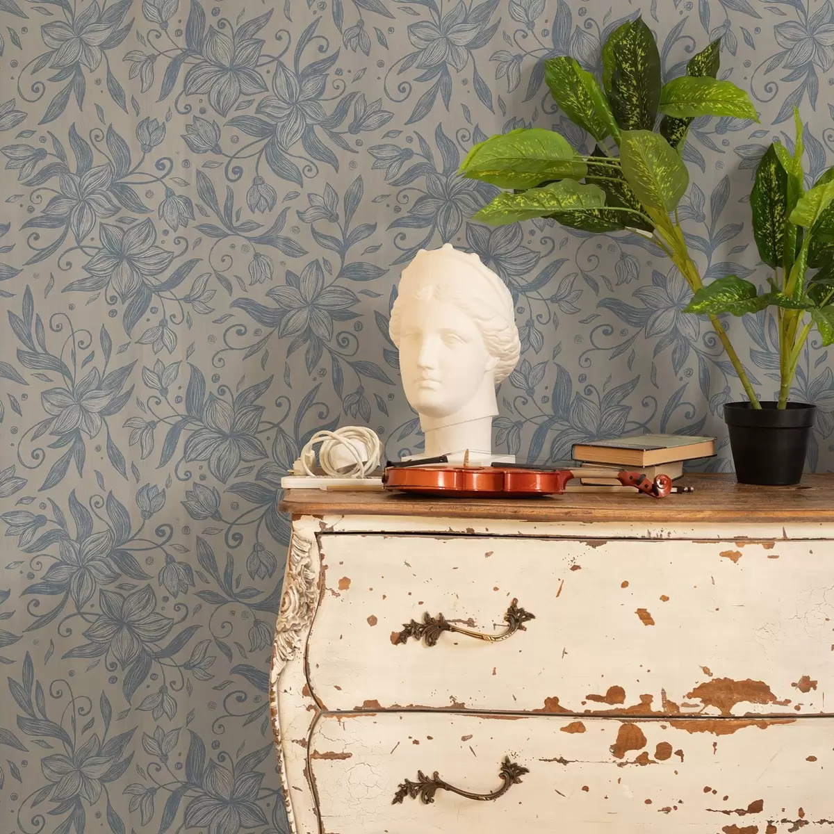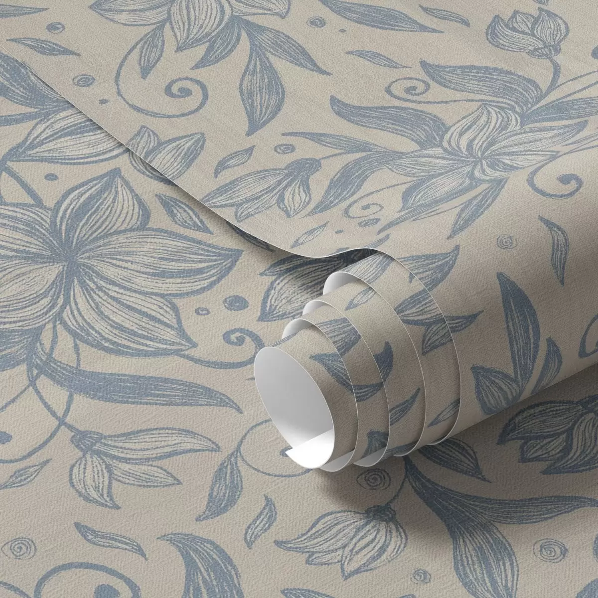 Tapet Model floral liniar albastru pe fond bej cald Nr. a00630v2