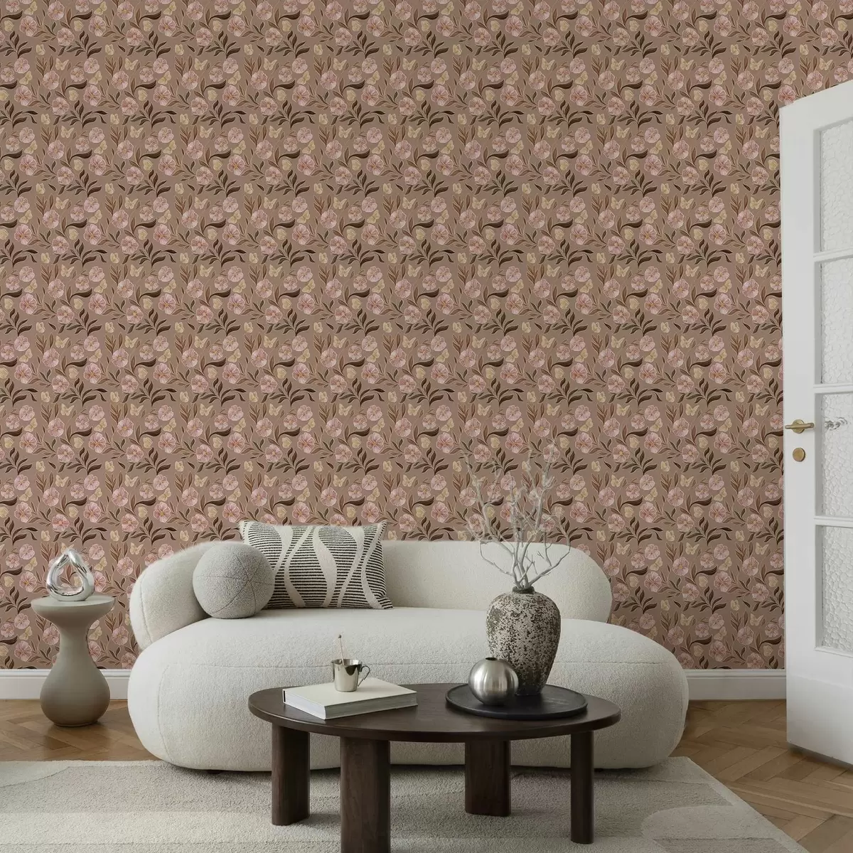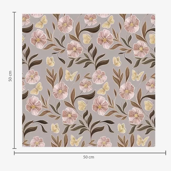 Tapet Flori roz și fluturi pe un fundal maro cald Nr. a00633v1