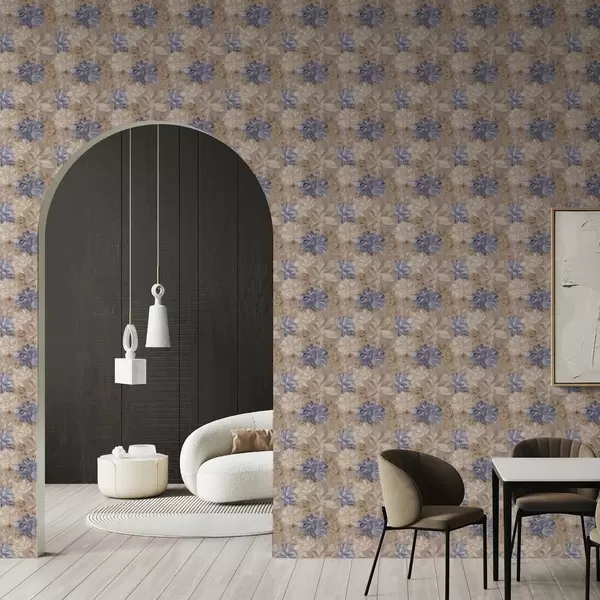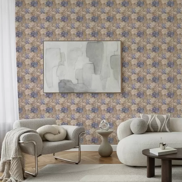 Tapet Cremă luxuriantă și flori albastre într-o paletă pastelată Nr. a00634