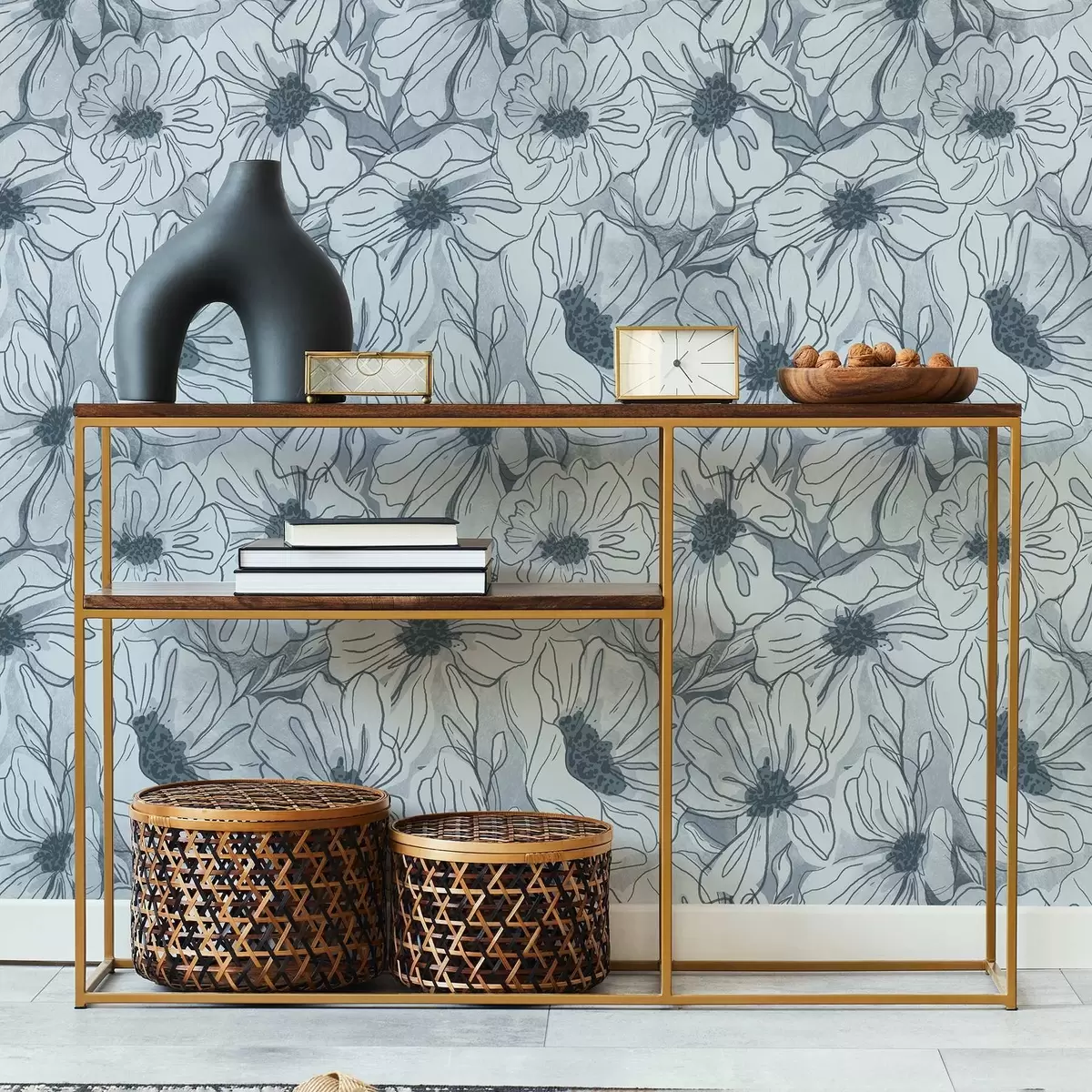 Tapet Flori liniare într-o paletă rece de gri-albastru Nr. a00636v2