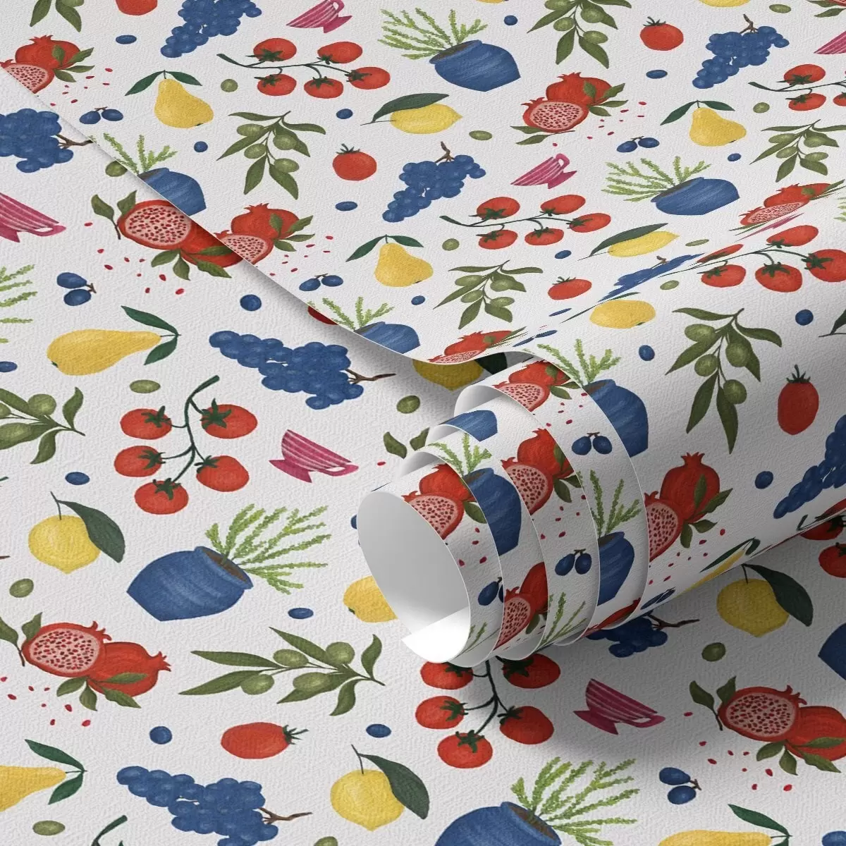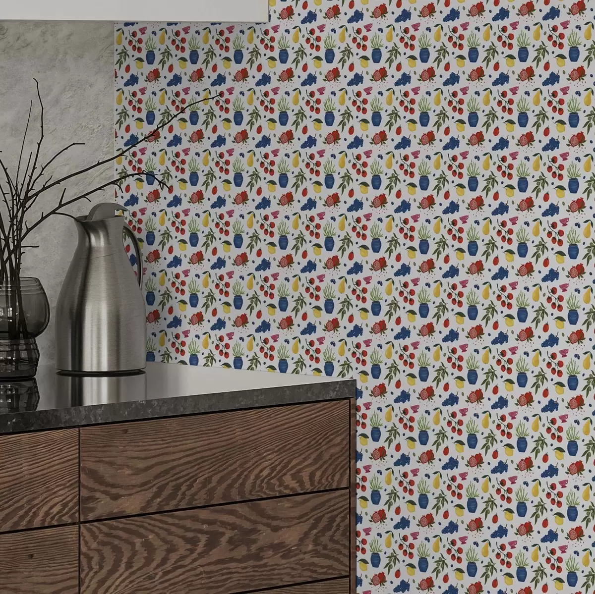 Tapet Model luminos cu fructe și plante pe fond alb Nr. a00637v1