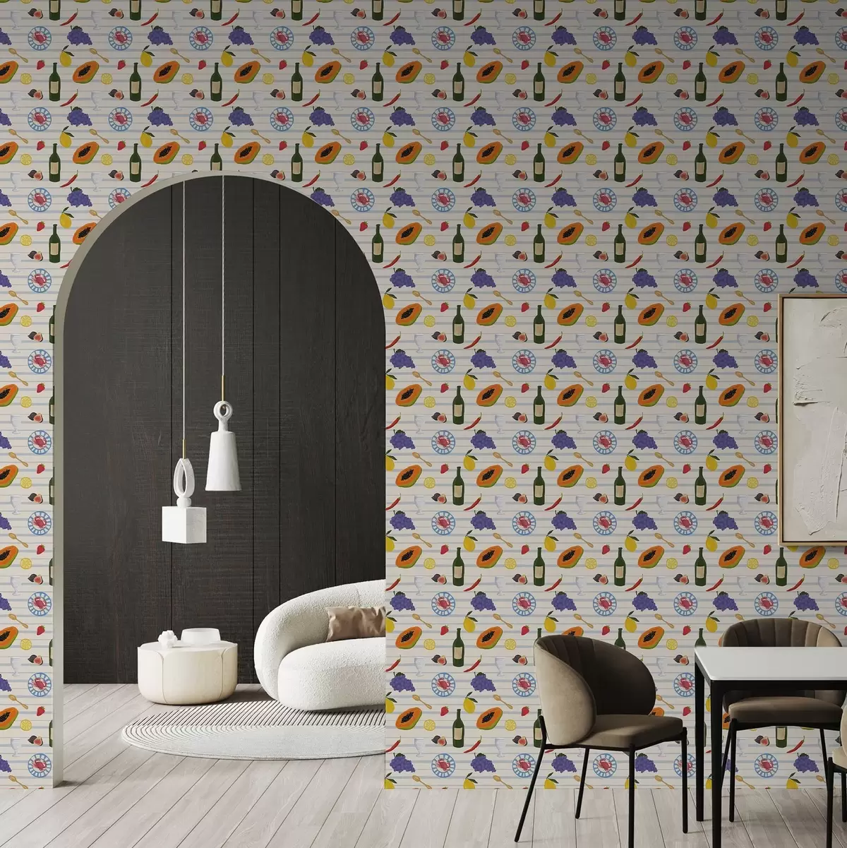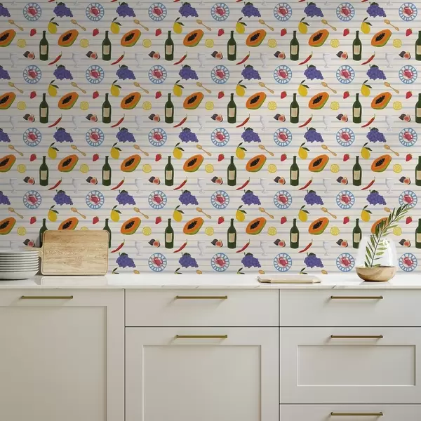 Tapet Imprimare pentru bucătărie cu fructe, pahare și farfurii Nr. a00638