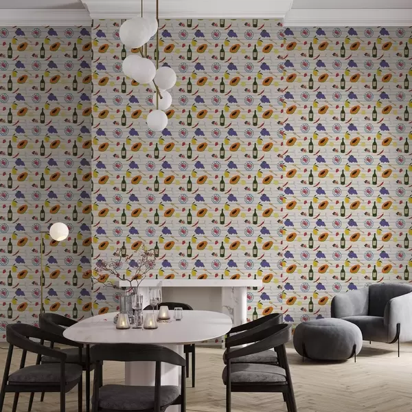 Tapet Imprimare pentru bucătărie cu fructe, pahare și farfurii Nr. a00638