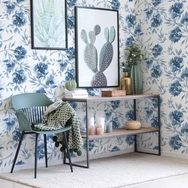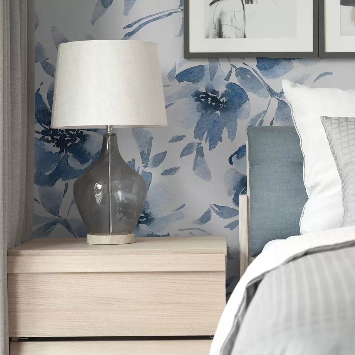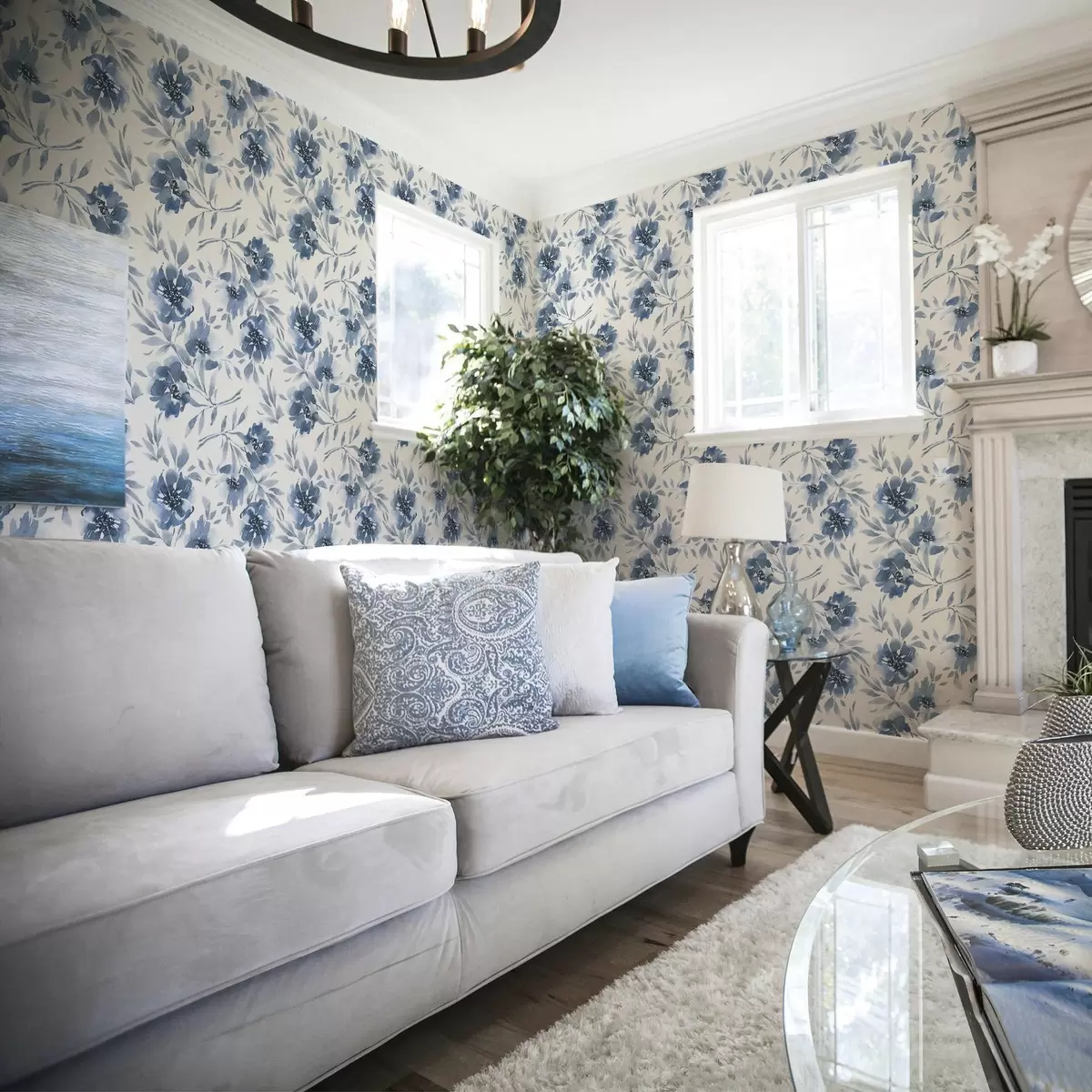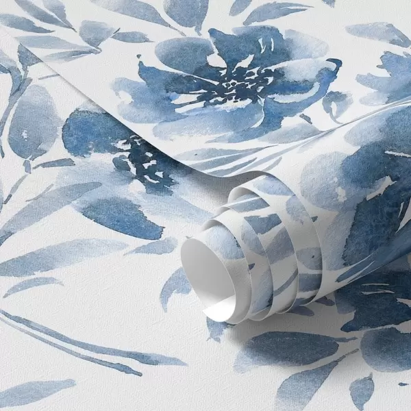 Tapet Bujori indigo acuarelă pe fundal alb Nr. a00641