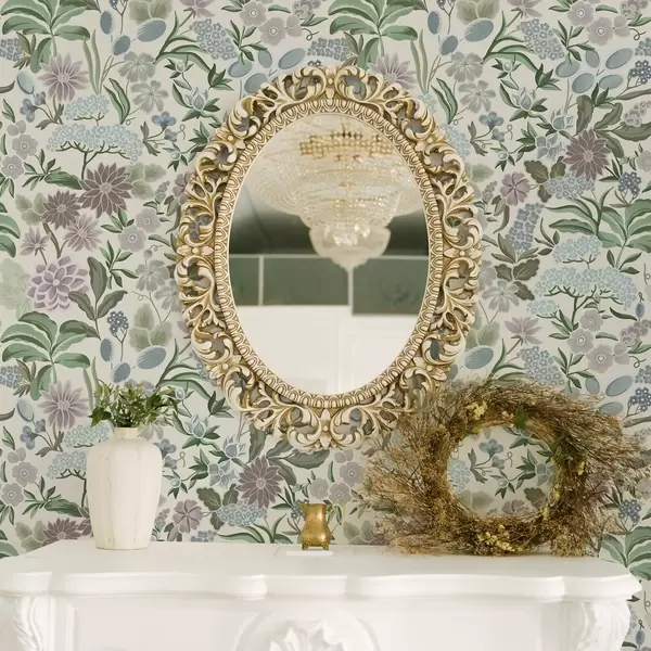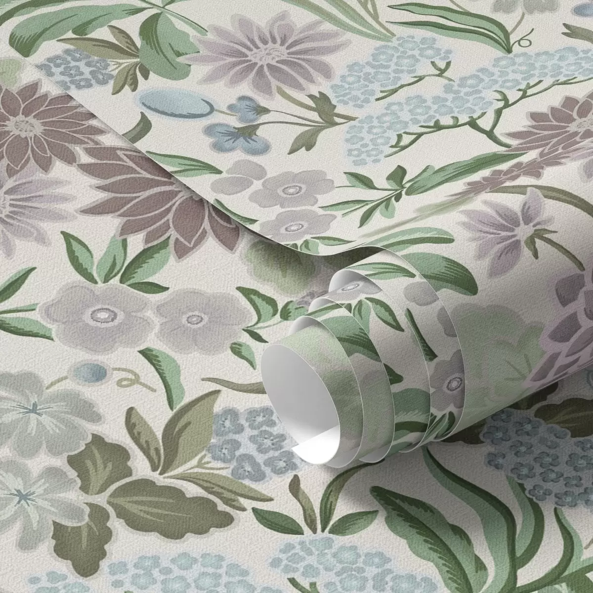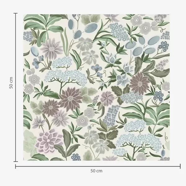 Tapet Flori și frunze pastelate într-o paletă de culori albastru mentă Nr. a00642