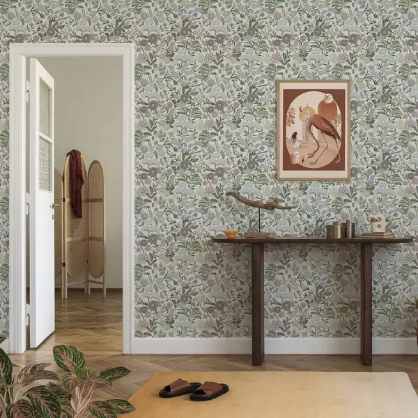 Tapet Flori și frunze pastelate într-o paletă de culori albastru mentă Nr. a00642