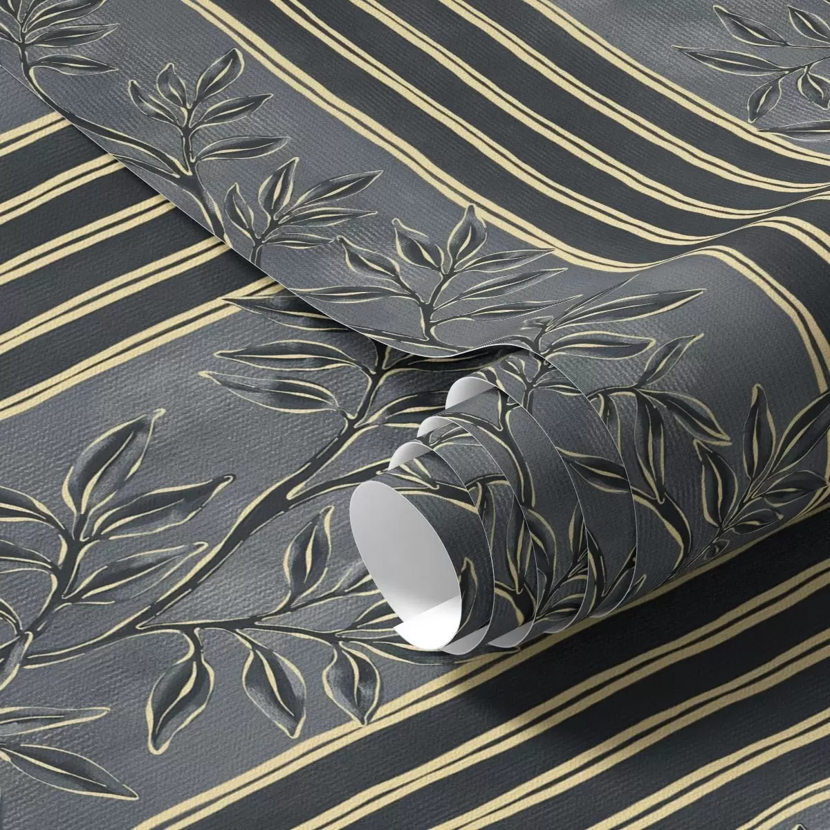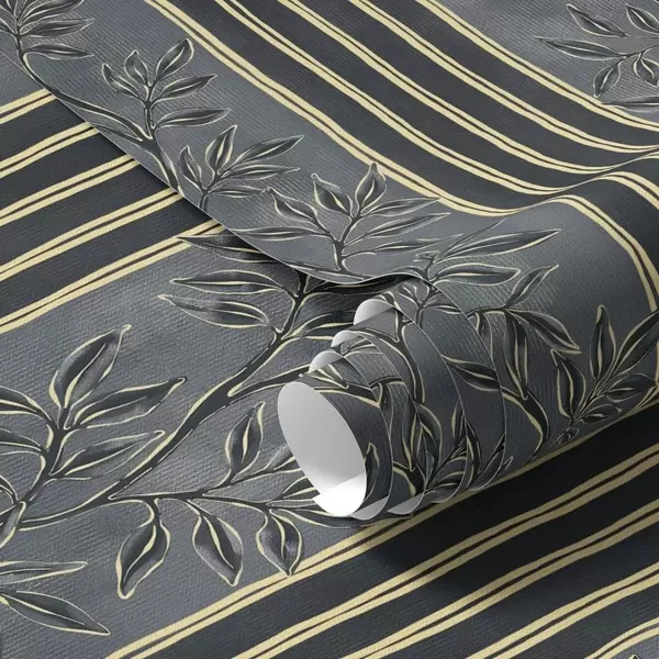 Tapet Dungi verticale cu motive botanice în tonuri închise Nr. a00648