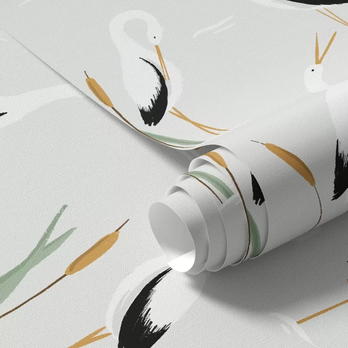 Tapet Stârci printre stufărișuri pe un fundal deschis Nr. a00650v2