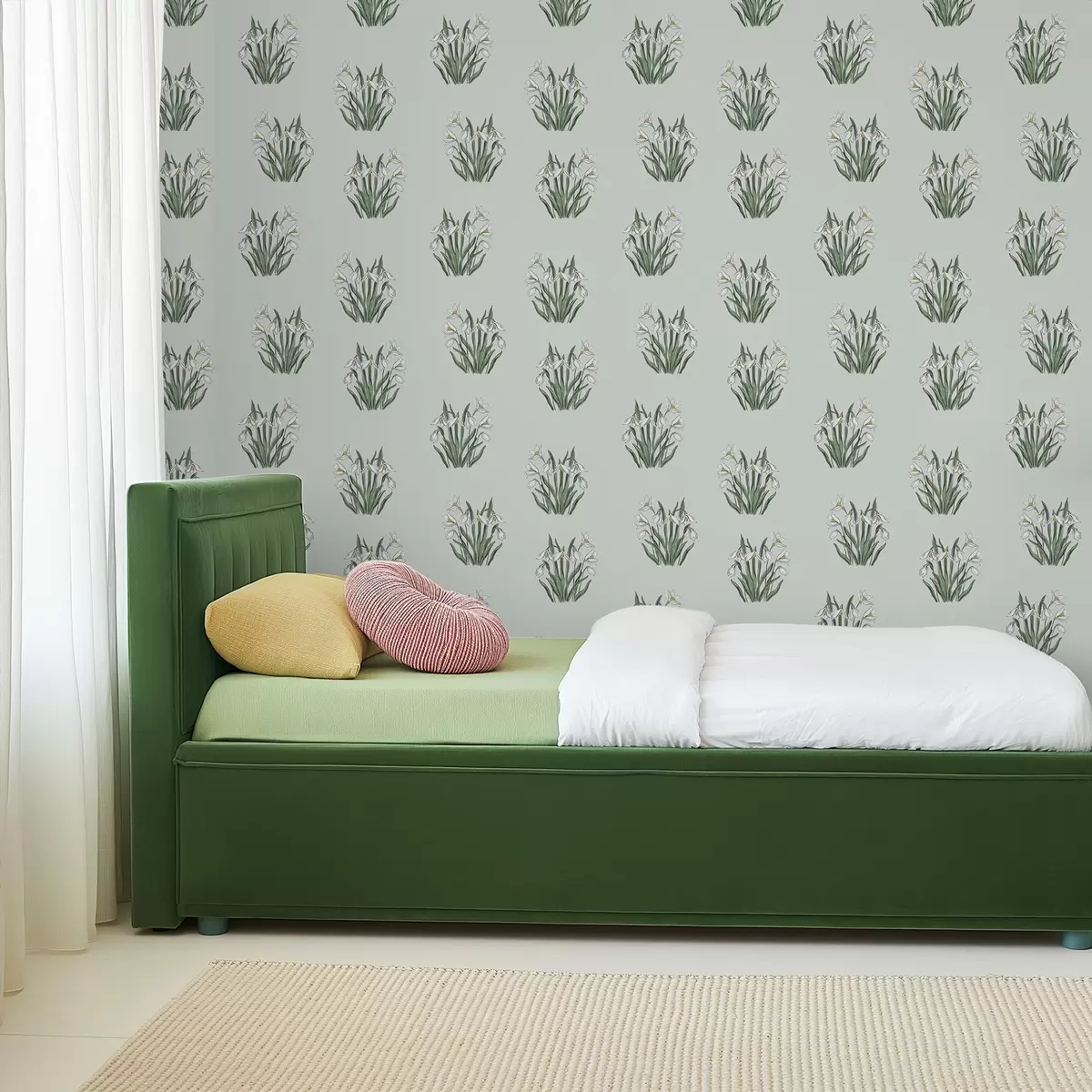 Tapet Ghiocei cu frunze verzi pe un fundal verde pastelat Nr. a00651