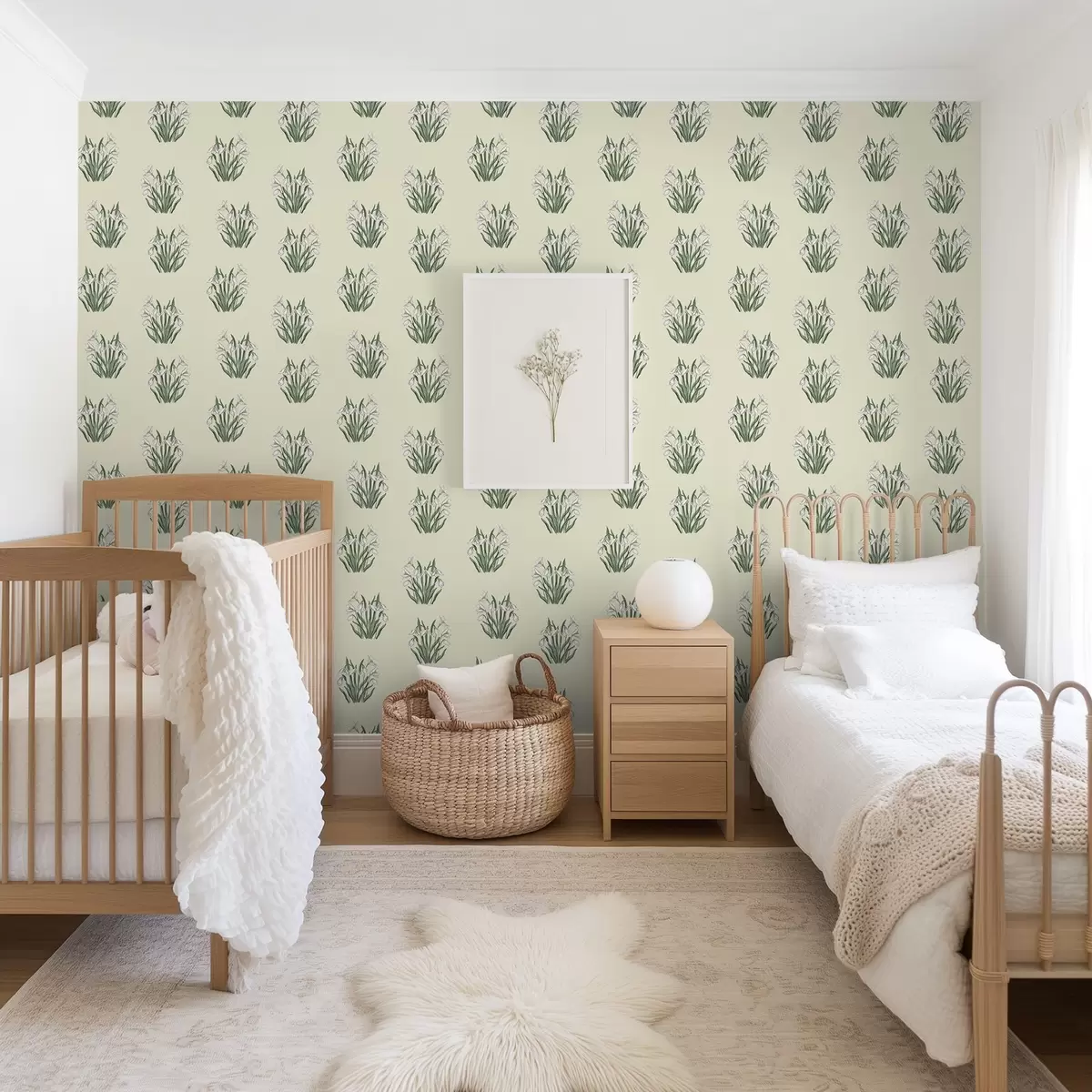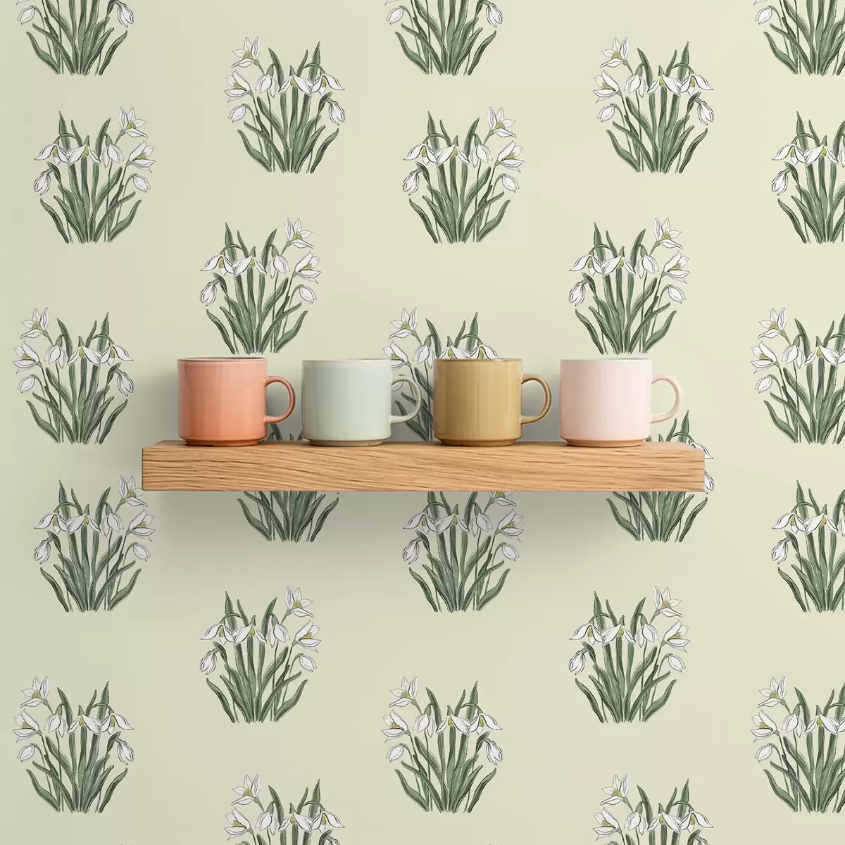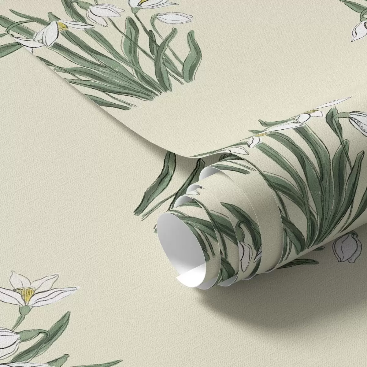 Tapet Ghiocei cu frunze verzi pe un fundal cremos Nr. a00651v2