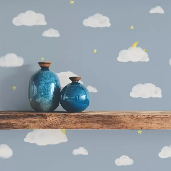 Tapet Nori moi, stele și soare pe un fundal albastru Nr. a00652