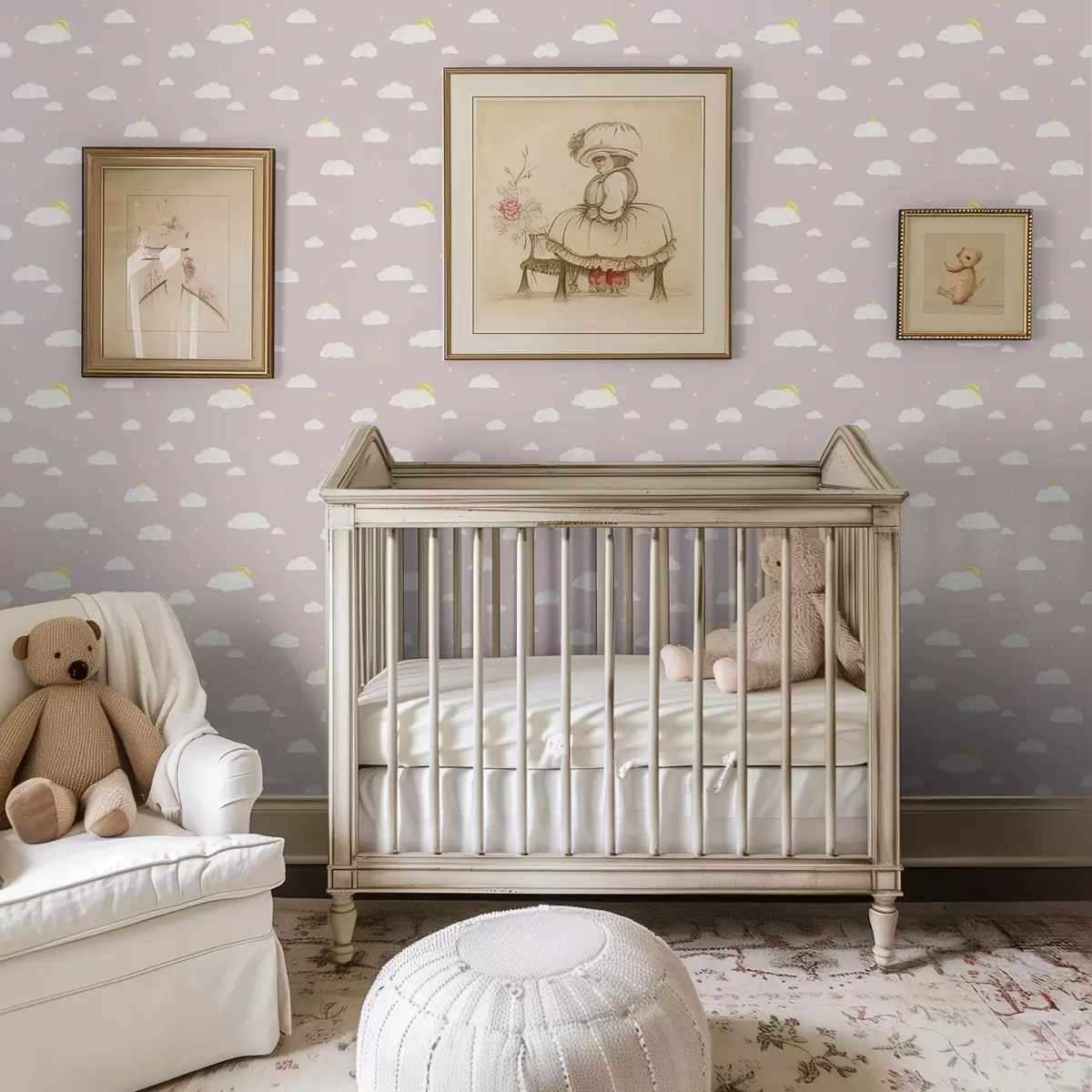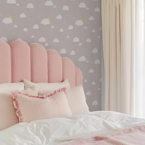 Tapet Nori moi, stele și soare pe un fundal gri-rozaliu Nr. a00652v2