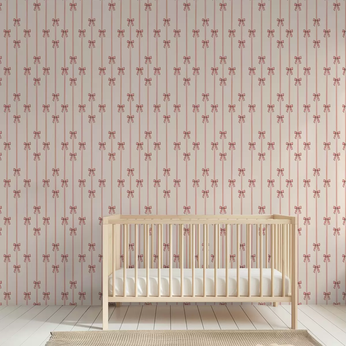 Tapet Panglici verticale cu funde, fundal de culoare fildeș Nr. a00653