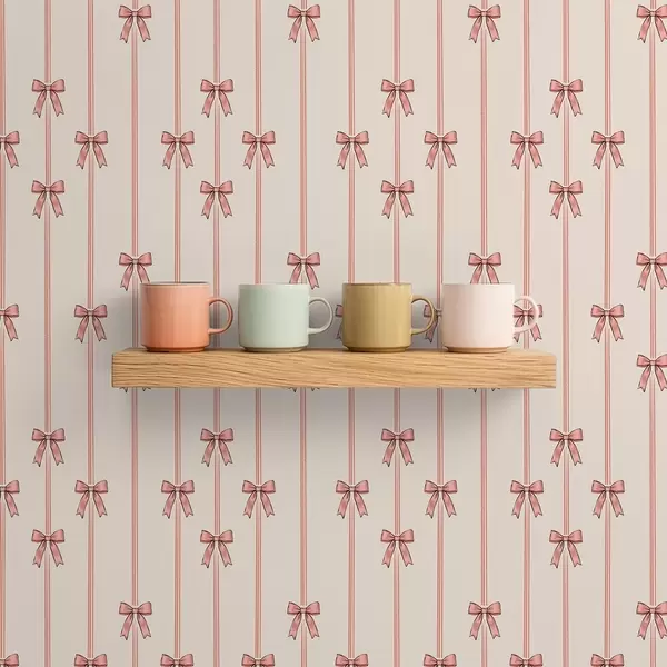 Tapet Panglici verticale cu funde, fundal de culoare fildeș Nr. a00653
