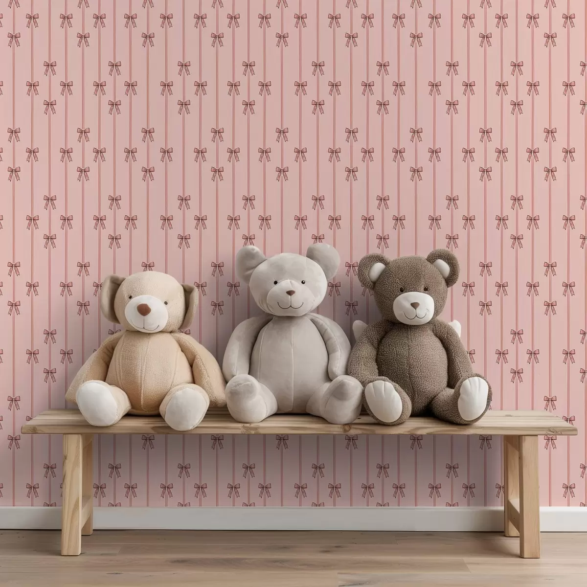 Tapet Panglici verticale cu funde, fundal roz coral Nr. a00653v3