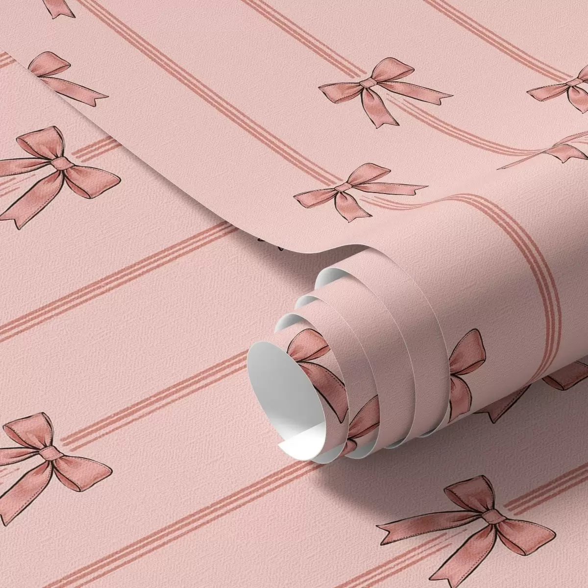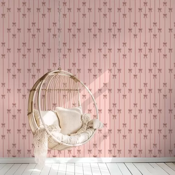 Tapet Panglici verticale cu funde, fundal roz coral Nr. a00653v3