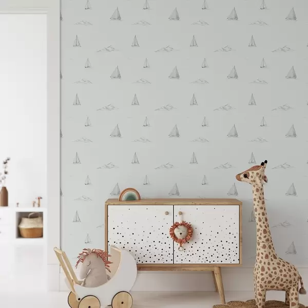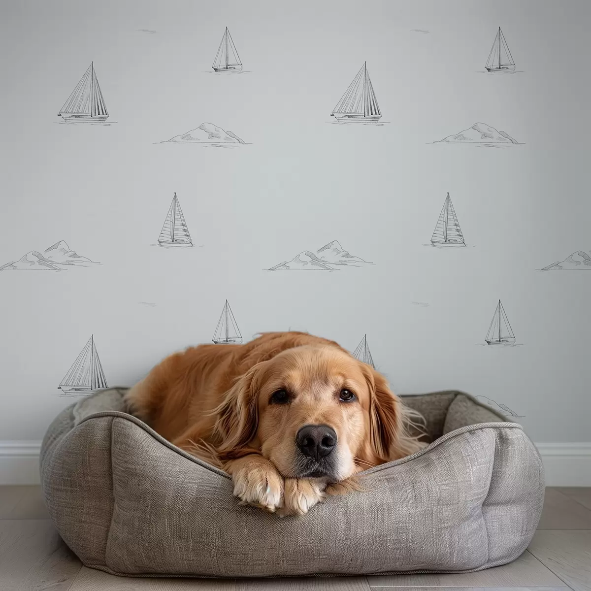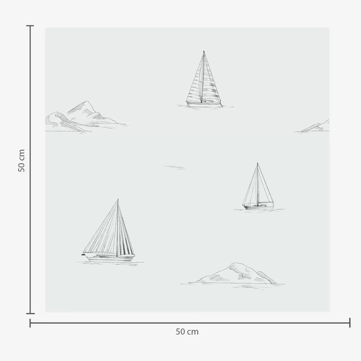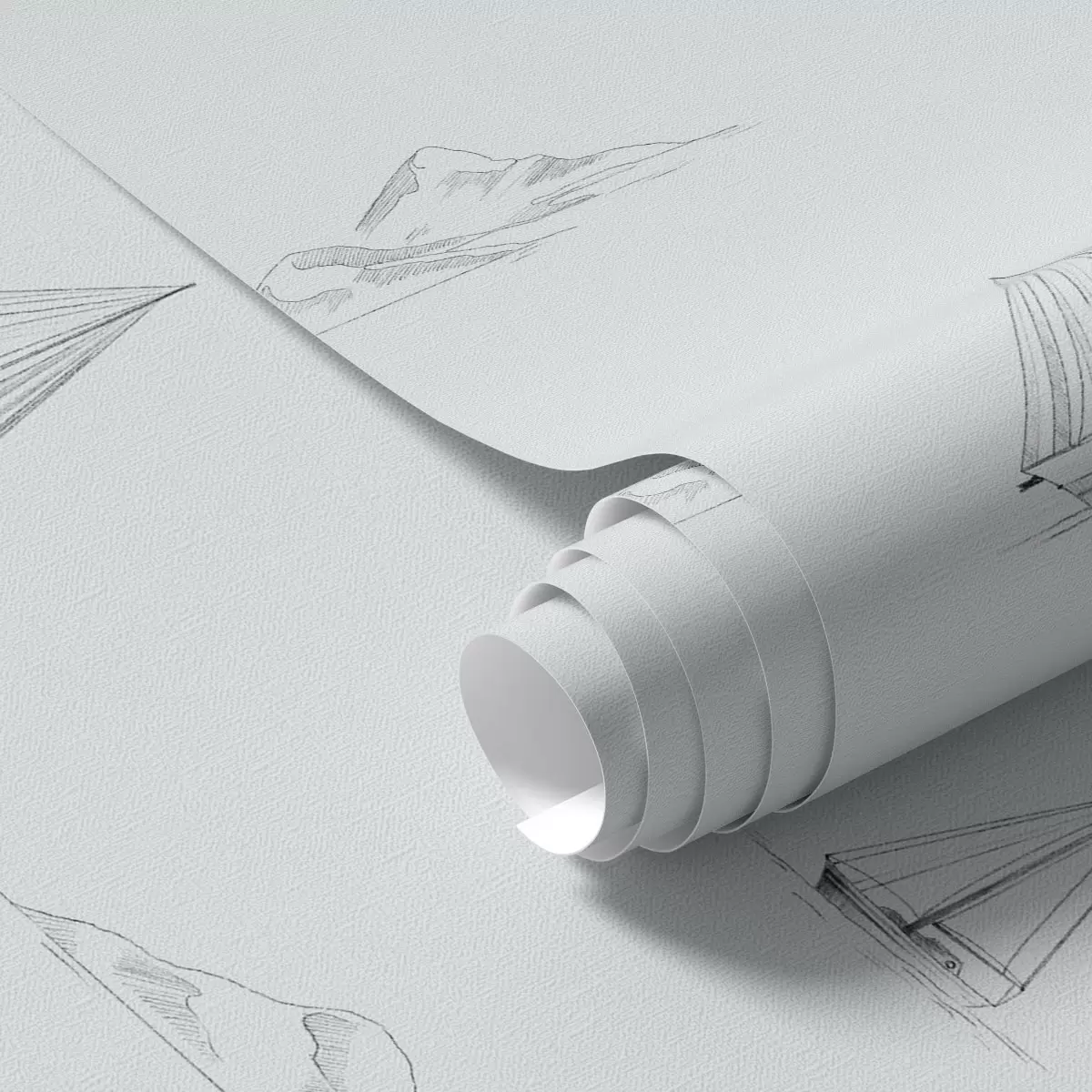 Tapet Schițe de iahturi și insule, fundal albastru-gri rece Nr. a00654