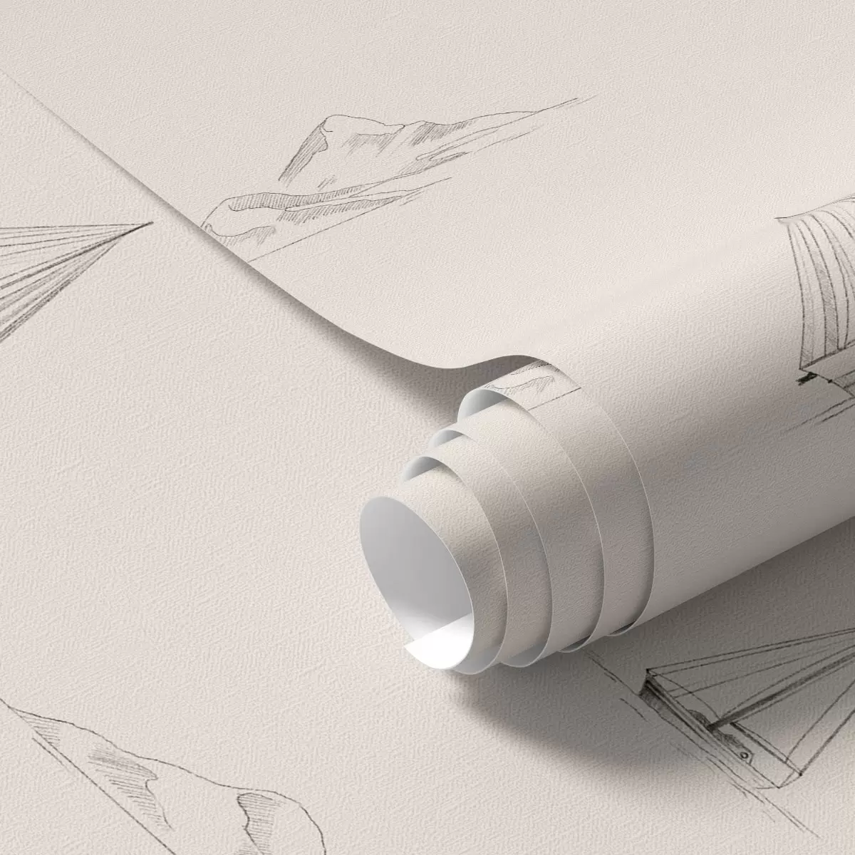 Tapet Schițe de iahturi și insule, fundal crem cald Nr. a00654v1