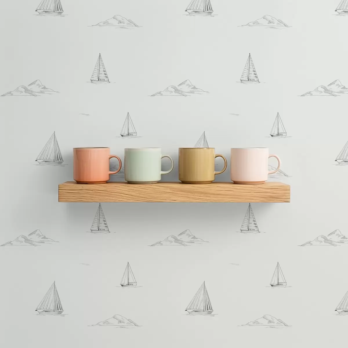 Tapet Schițe de iahturi și insule, fundal deschis Nr. a00654v2