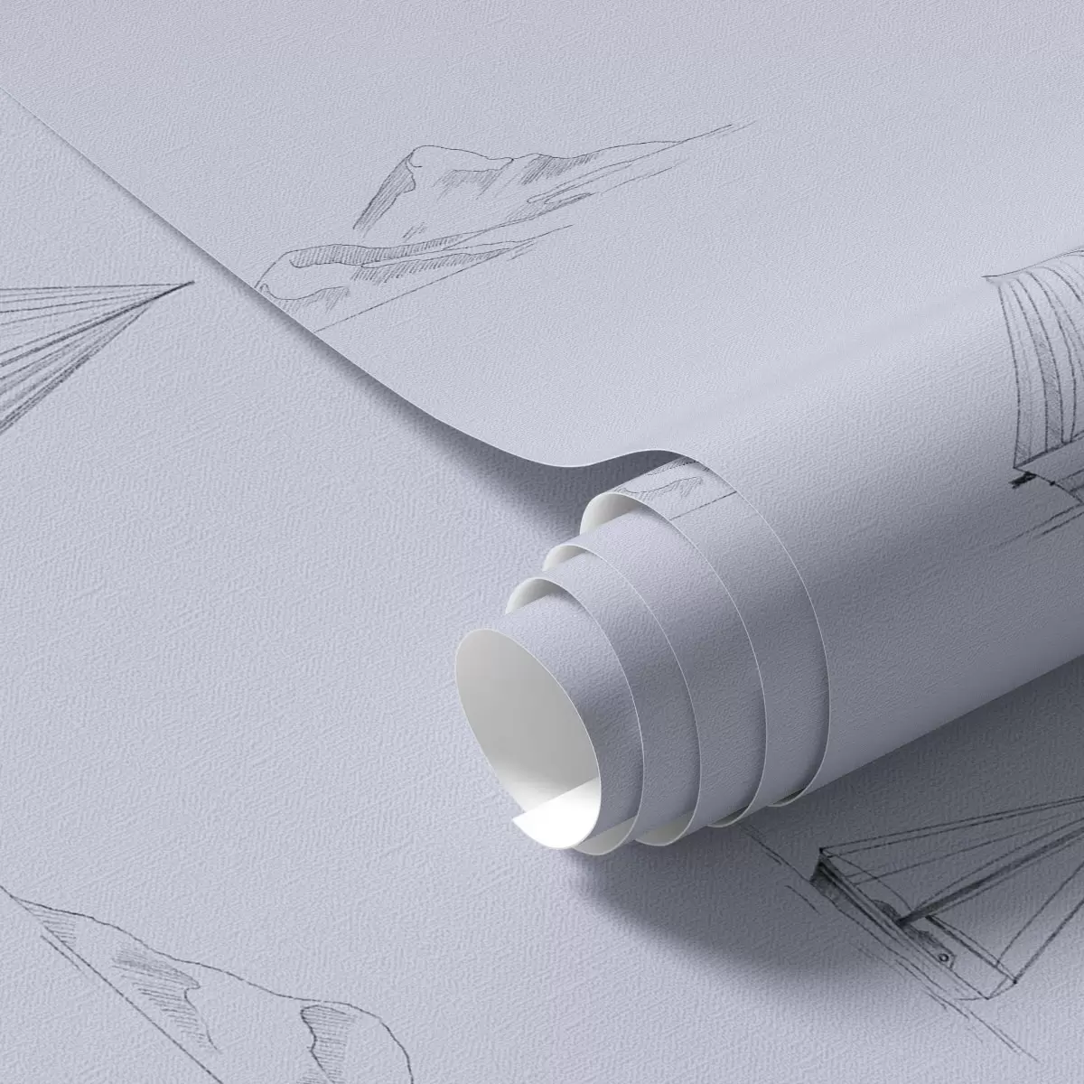 Tapet Schițe de iahturi și insule, fundal albastru Nr. a00654v3
