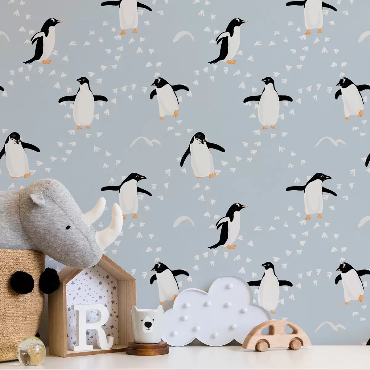 Tapet Pinguini pe albastru deschis, ritmul pașilor Nr. a00655v2