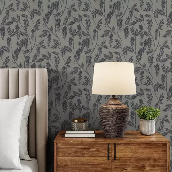 Wallpaper Ramuri cu flori întunecate pe un fundal gri-bej a00672