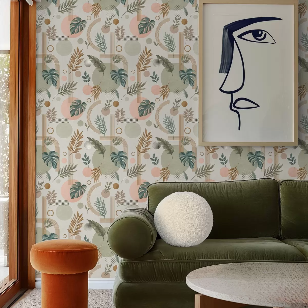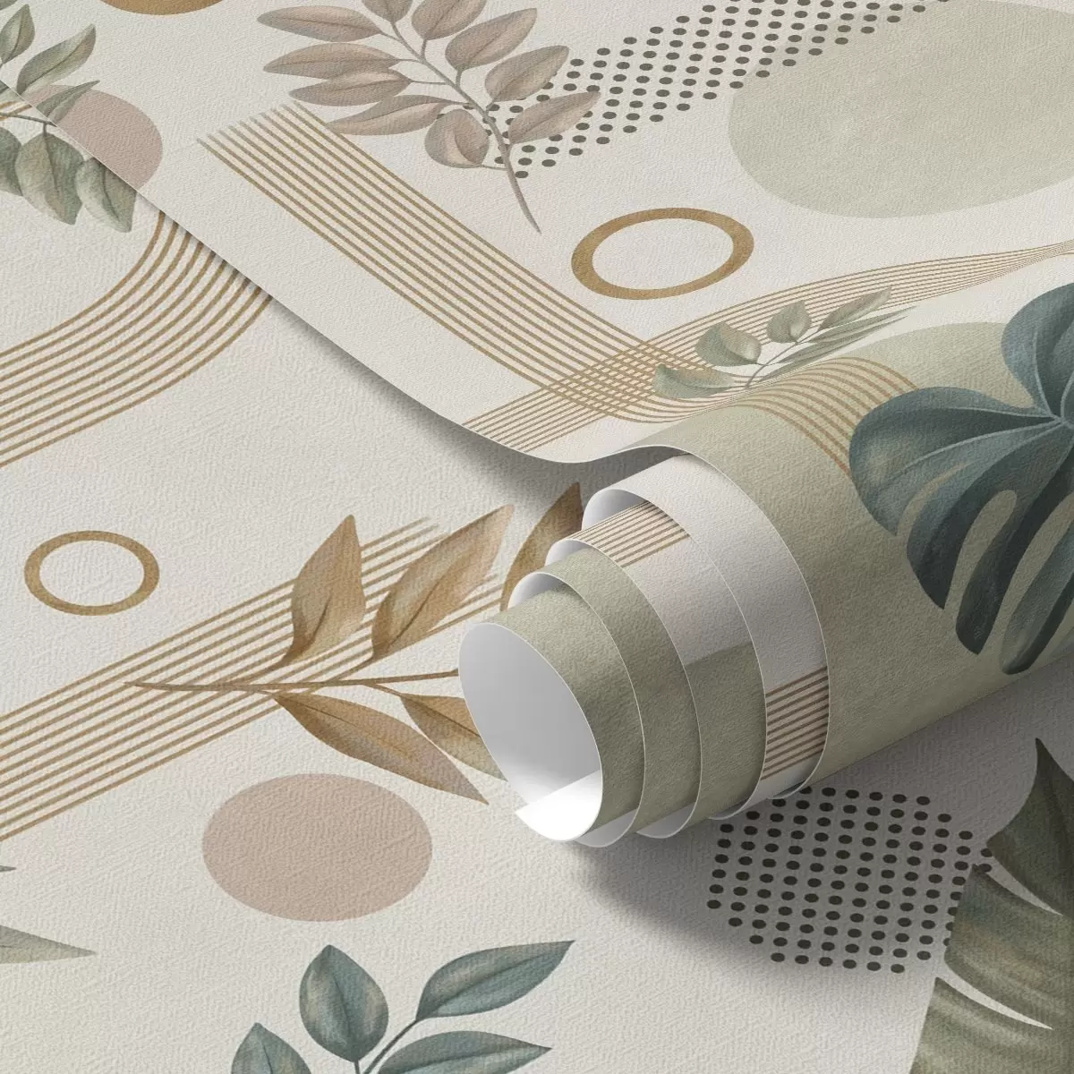 Tapet Frunze și forme geometrice în nuanțe calde și liniștite Nr. a00677