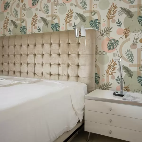 Tapet Frunze și forme geometrice în nuanțe calde și liniștite Nr. a00677