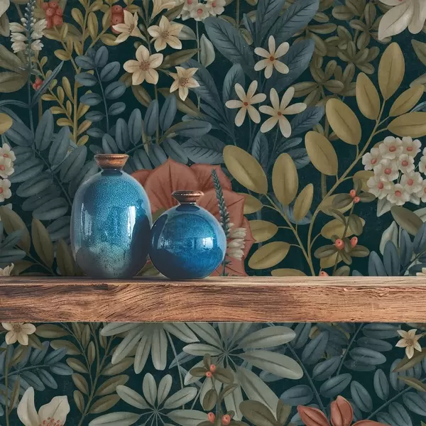 Tapet Fundal întunecat cu flori și frunze dense în tonuri calde Nr. a00678