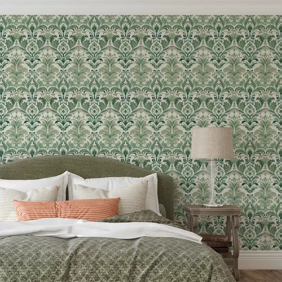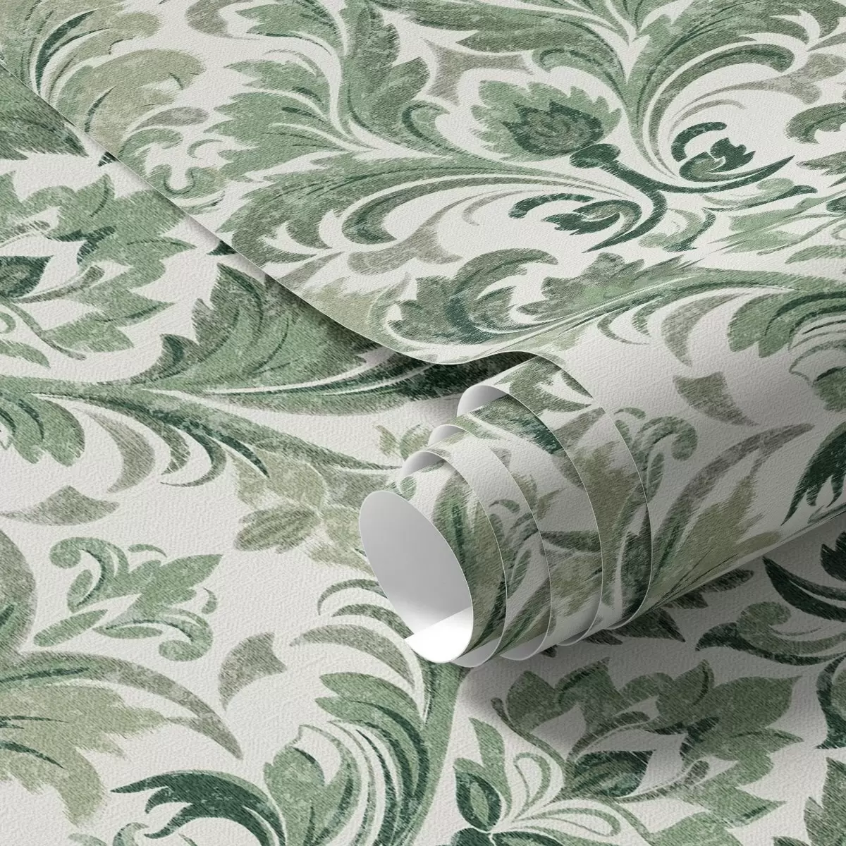 Wallpaper Damasc verde cu textură în relief pe un fundal deschis a00692