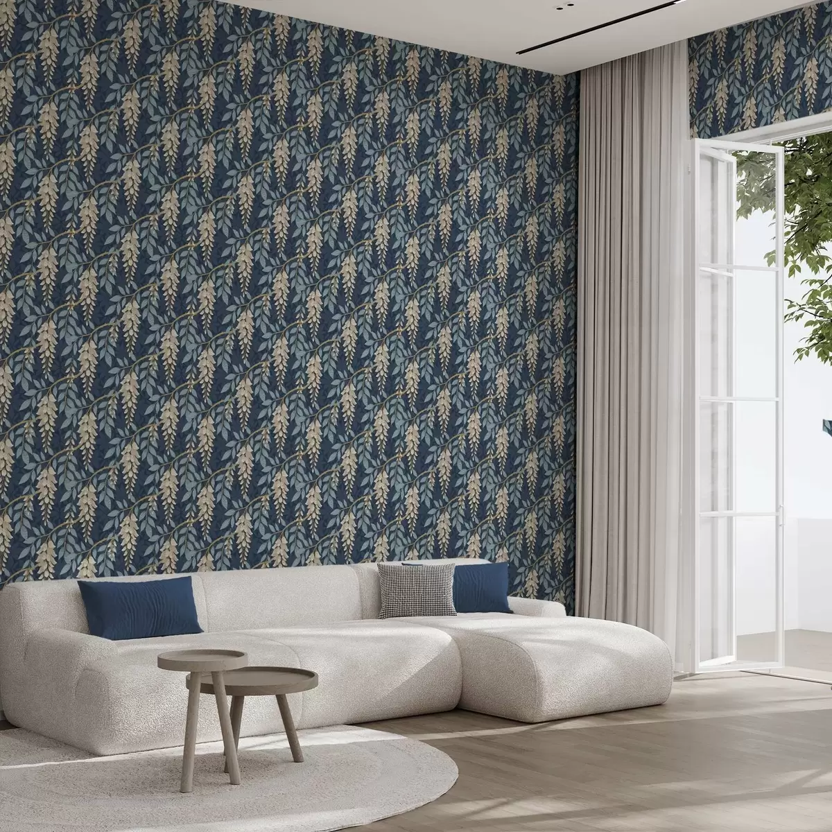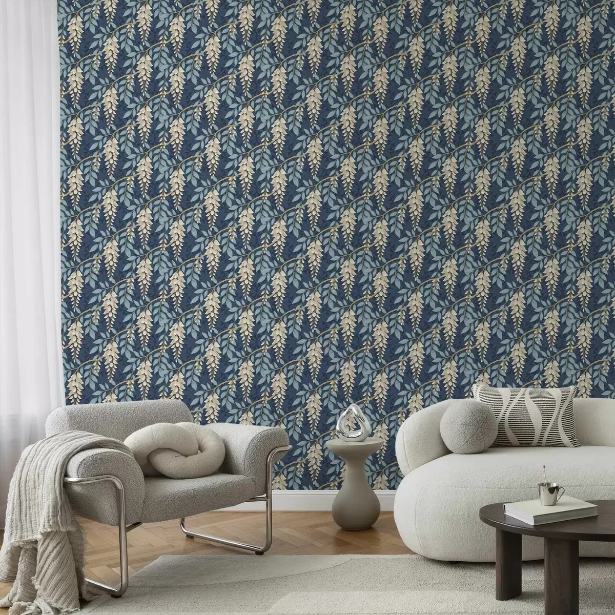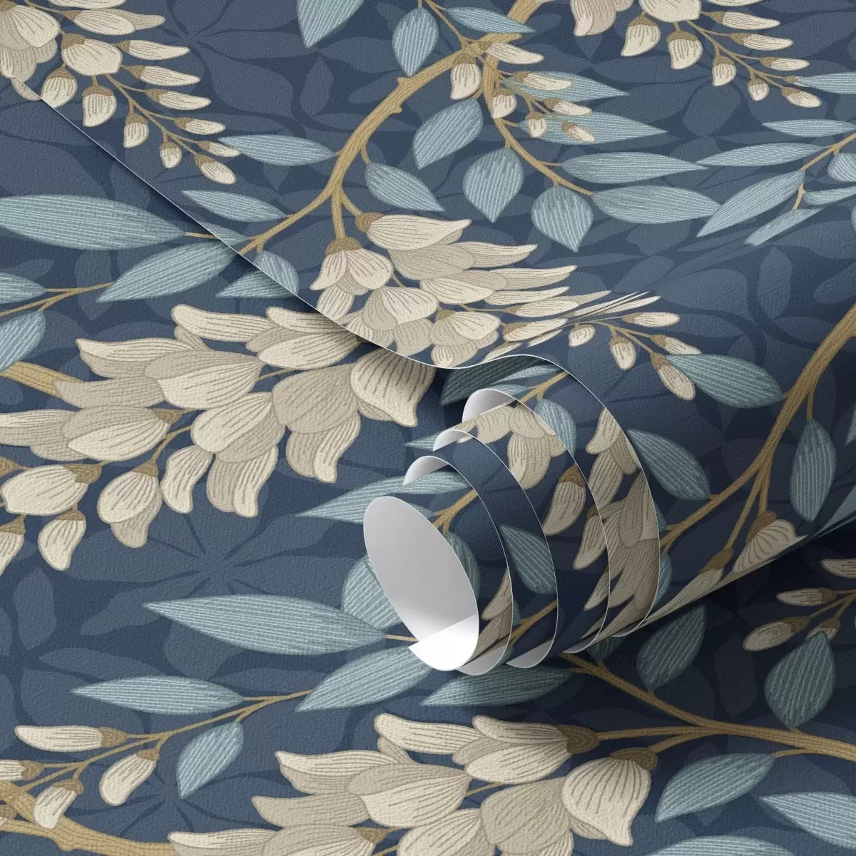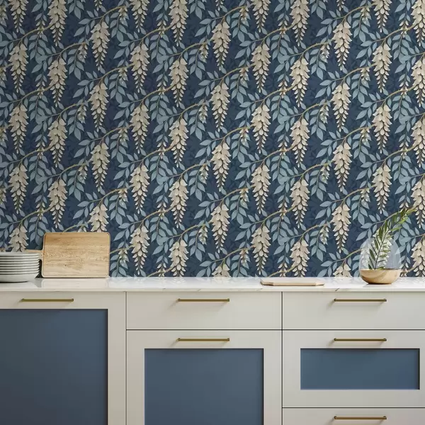 Tapet Glicină cu frunze albastre pe fond albastru închis Nr. a00694v2