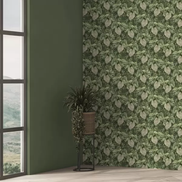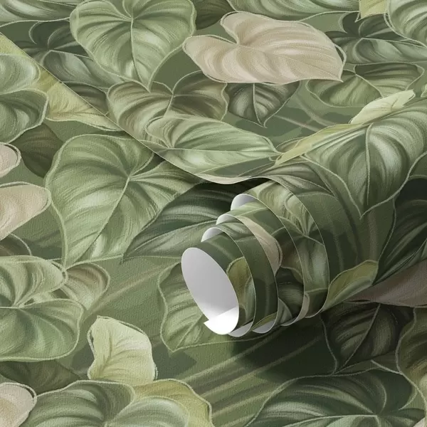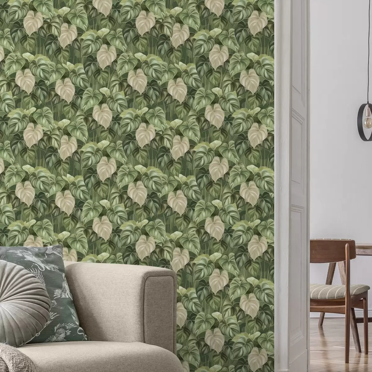 Tapet Frunze luxuriante de filodendron în nuanțe de verde și fildeș Nr. a00695