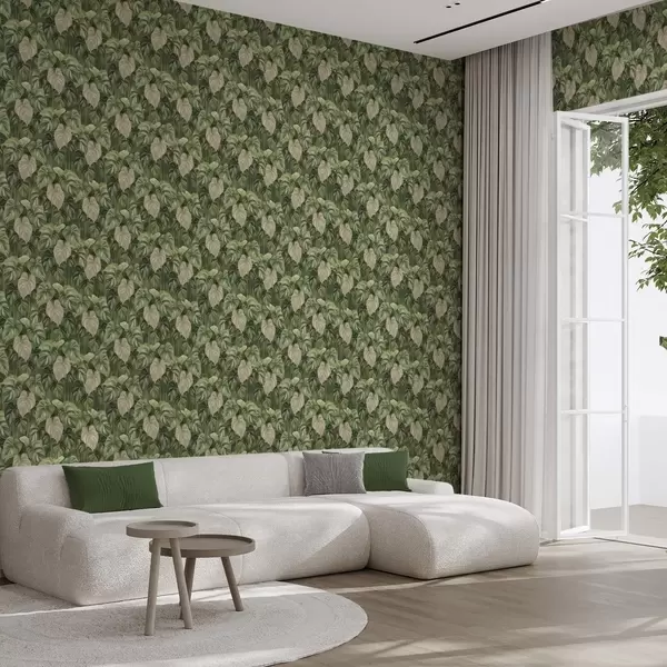 Tapet Frunze luxuriante de filodendron în nuanțe de verde și fildeș Nr. a00695
