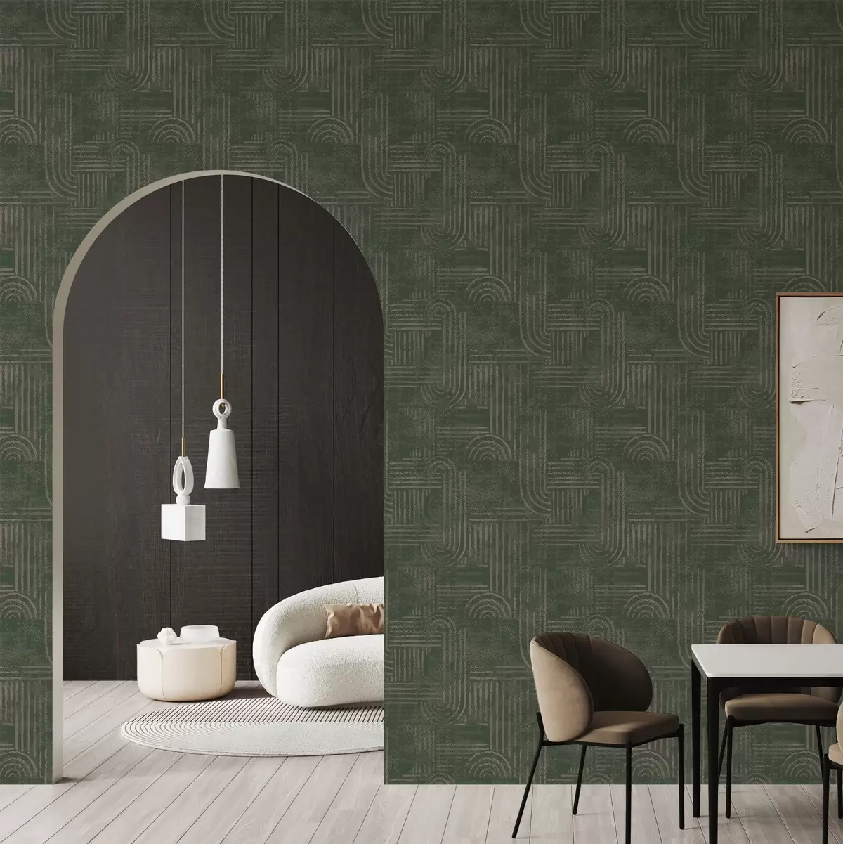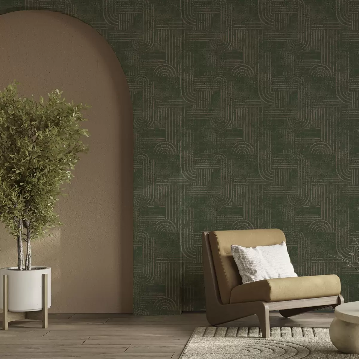 Tapet Model geometric cu arcuri într-o paletă de culori verzi Nr. a00697