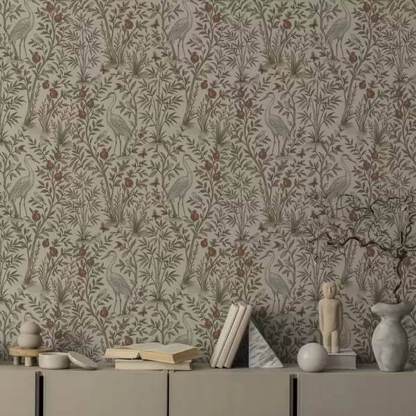 Tapet Păsări printre pomii de rodie într-un cadru natural Nr. a00699