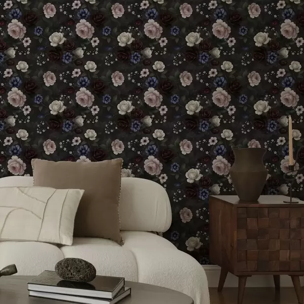 Tapet Trandafiri negri, anemone și bujori pe un fundal intens Nr. a00704