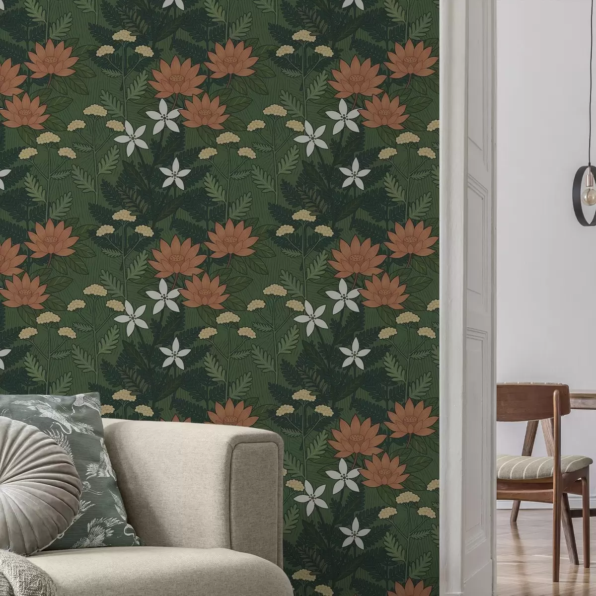 Tapet Flori mari printre frunzișul verde, compoziție decorativă Nr. a00708