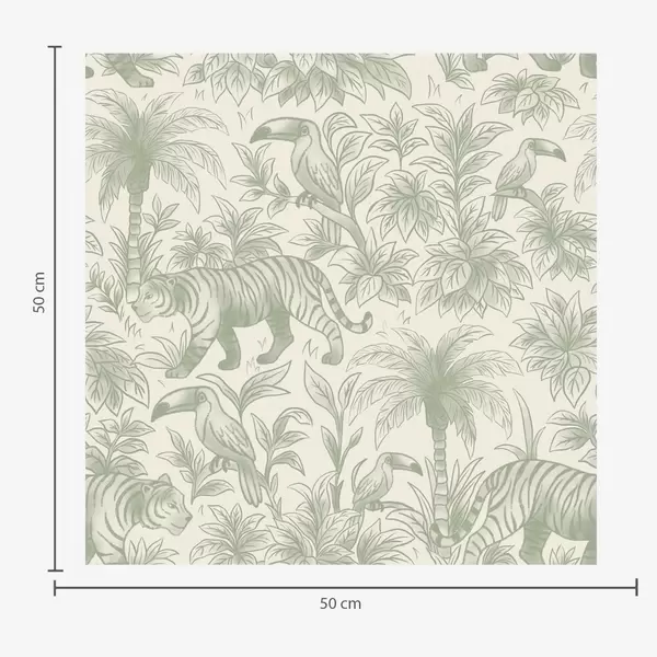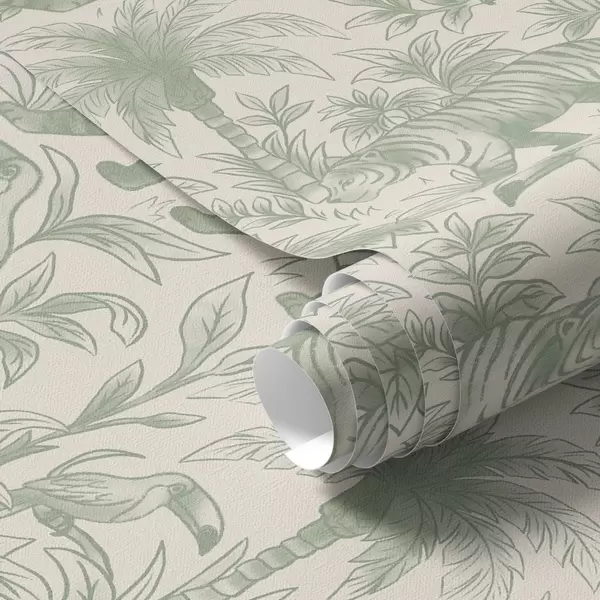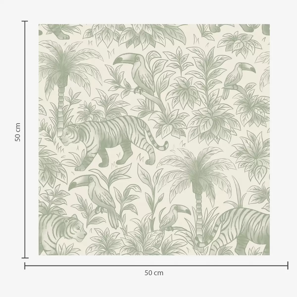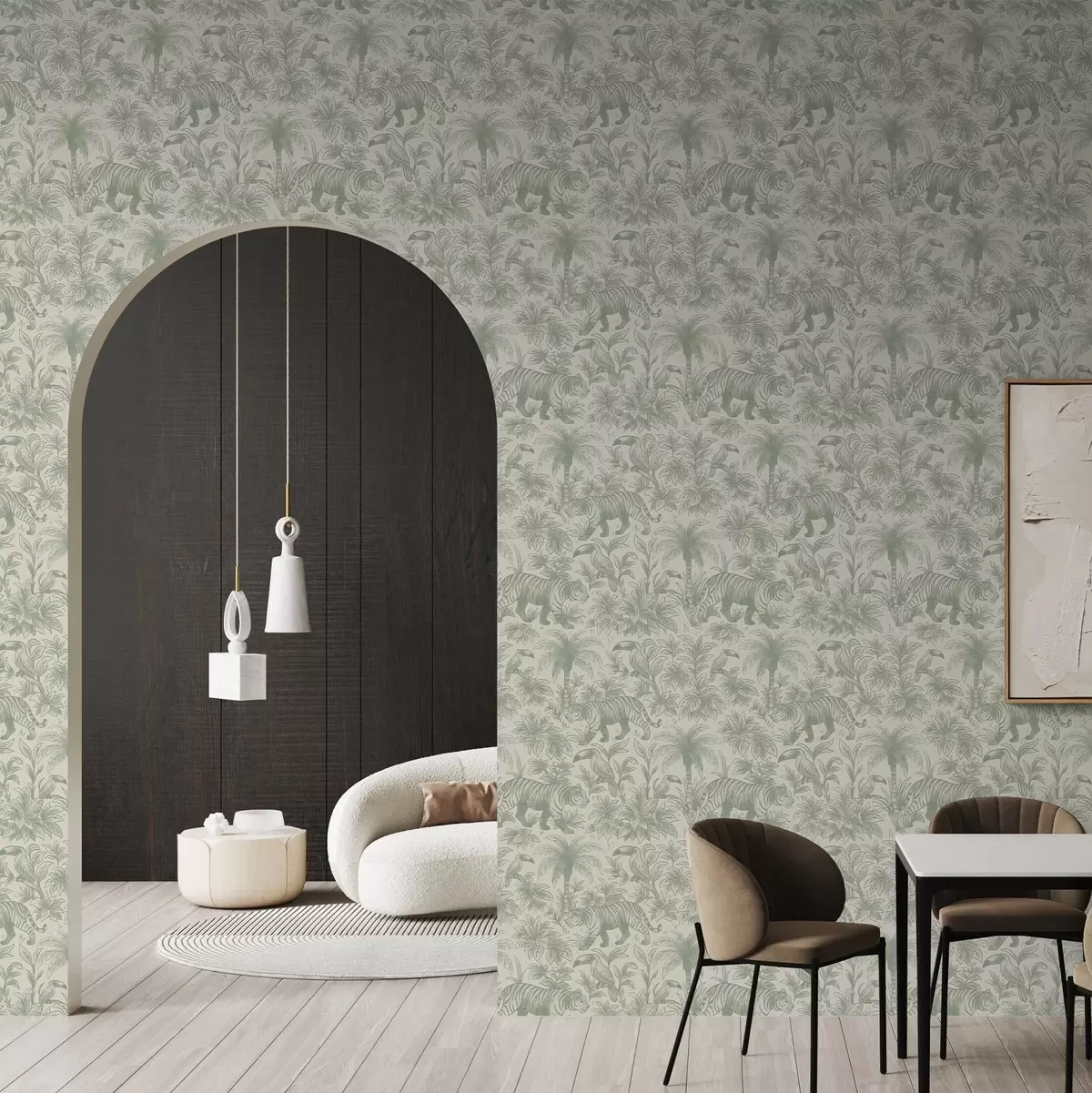 Tapet Tigri și păsări tropicale printre palmieri pe un fundal deschis Nr. a00711